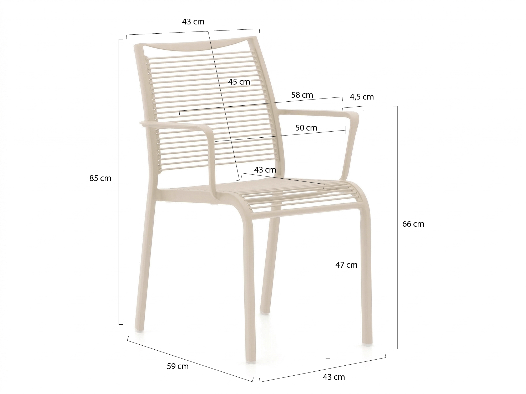 • Dining tuinstoel: zit rechtop aan tafel, ideaal voor lange etentjes buiten