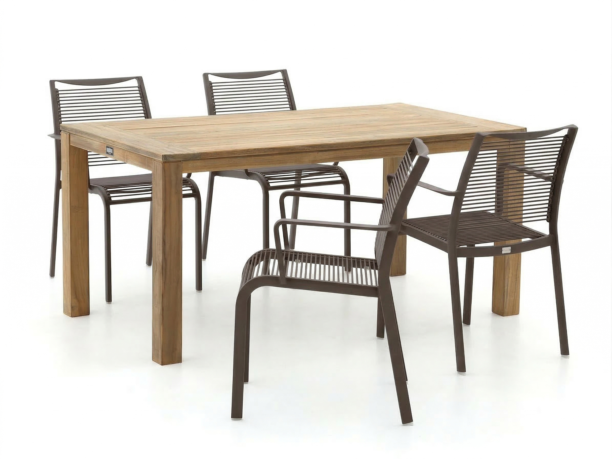 • Het teakhouten tafelblad is bestand tegen alle weersomstandigheden