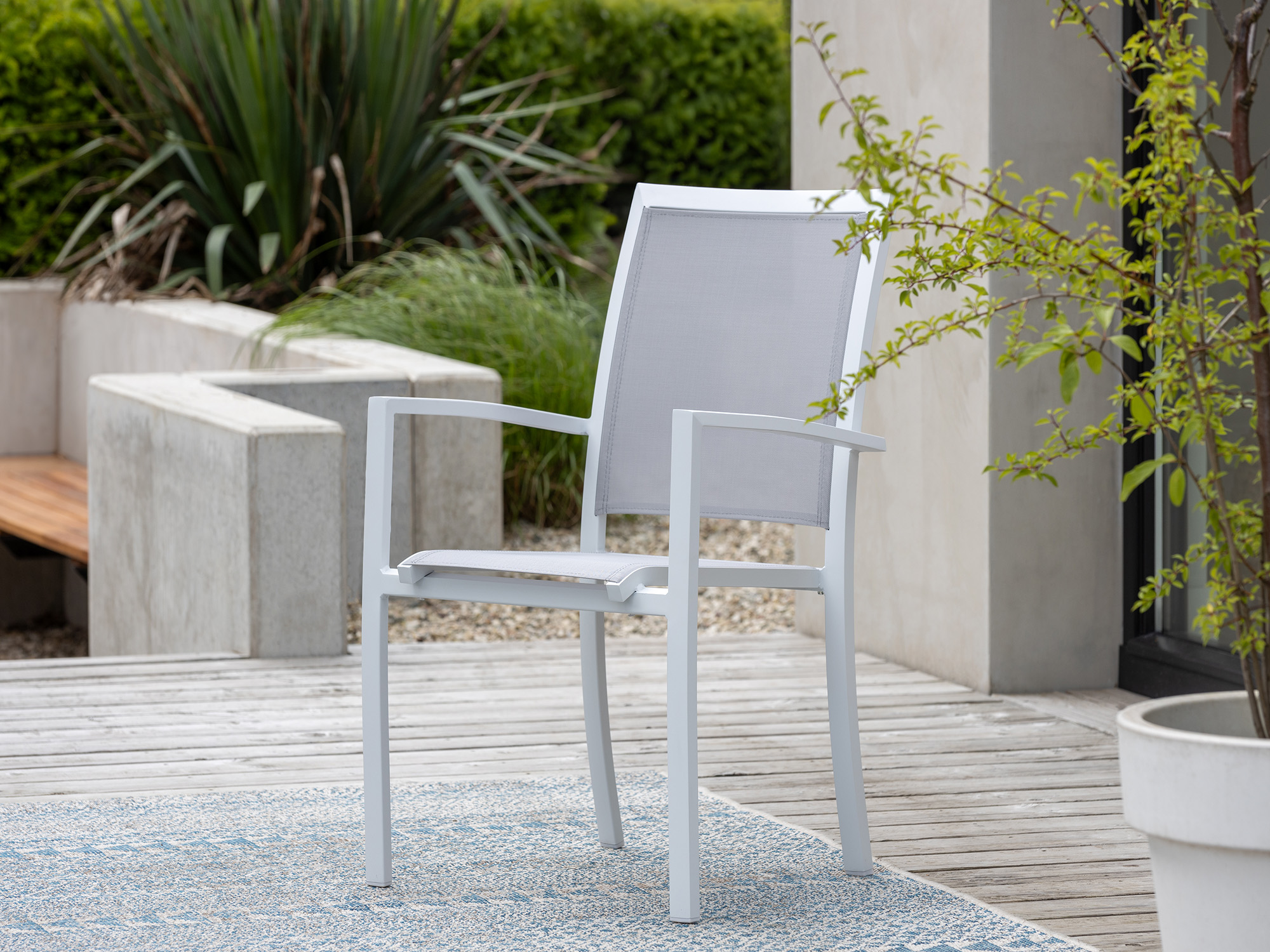 Textileen zitting: Comfortabel en ademend, ideaal voor lange zomeravonden buiten.