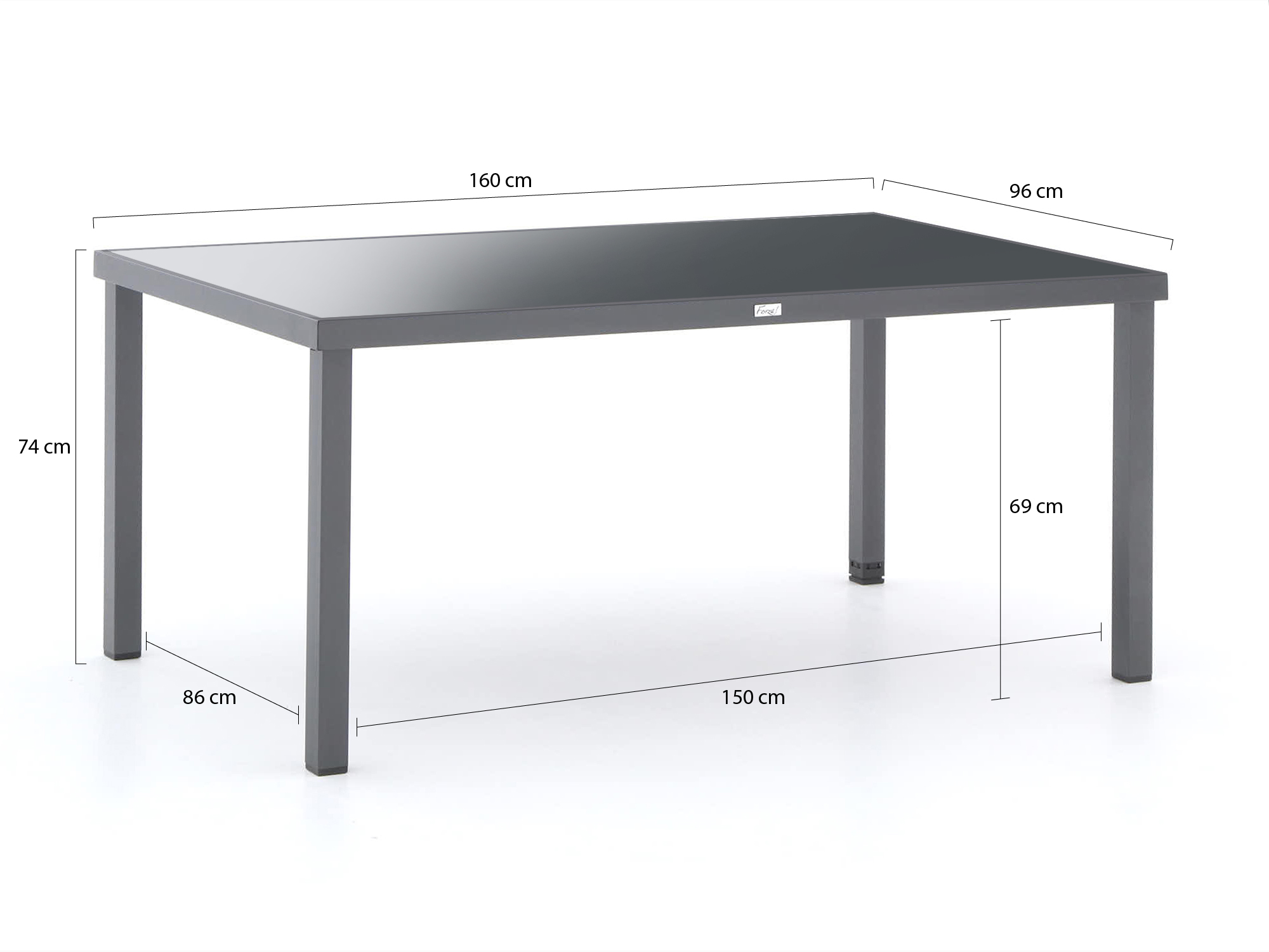 • Gehard glazen tafelblad (160 cm): Het stevige glas is minder breekbaar dan standaard glas en door het compacte formaat past de tafel goed op kleinere terrassen.