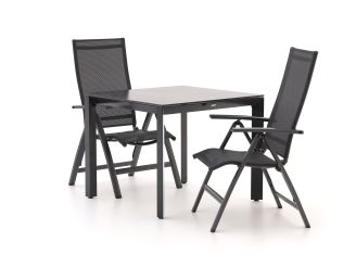 Ontdek de charme van de Bellagio Avenza/Sestino dining tuinset, een stijlvolle en praktische toevoeging aan je tuin. Deze 3-delige set is ontworpen voor ultiem comfort en flexibiliteit, met verstelbare stoelen die zich perfect naar jouw zithouding aanpassen. Het tafelblad van sintered stone in de kleur Shakespear Black geeft een moderne uitstraling en is bovendien onderhoudsarm. Het aluminium frame is licht en roest niet, ideaal voor buitengebruik. Met deze set geniet je van lange, ontspannen avonden in de tuin, zonder zorgen over onderhoud.