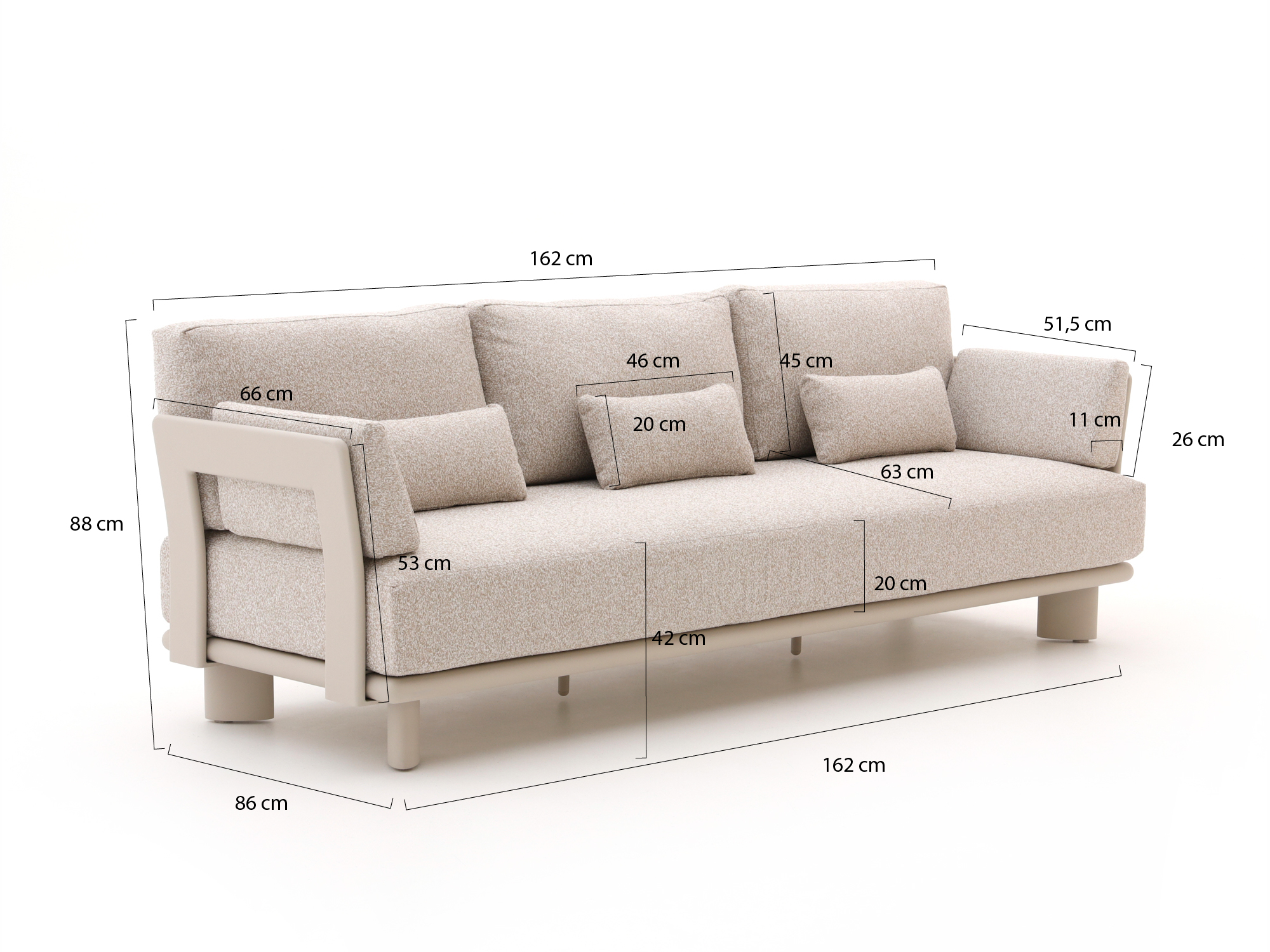 • Beige bekleding: De rustige kleur laat zich makkelijk combineren met andere meubels en accessoires in je tuin.
