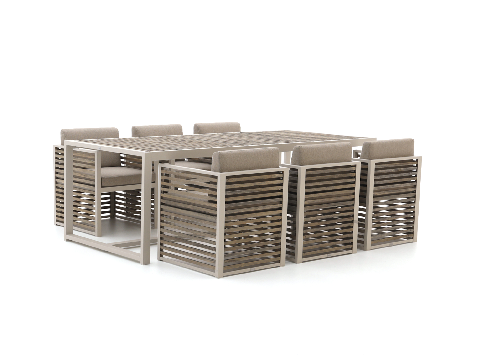 • Teak inlay tafelblad: Je hebt een sterk natuurproduct als blad, dat tegen weer en wind kan en waar je zorgeloos dagelijks aan kunt zitten.