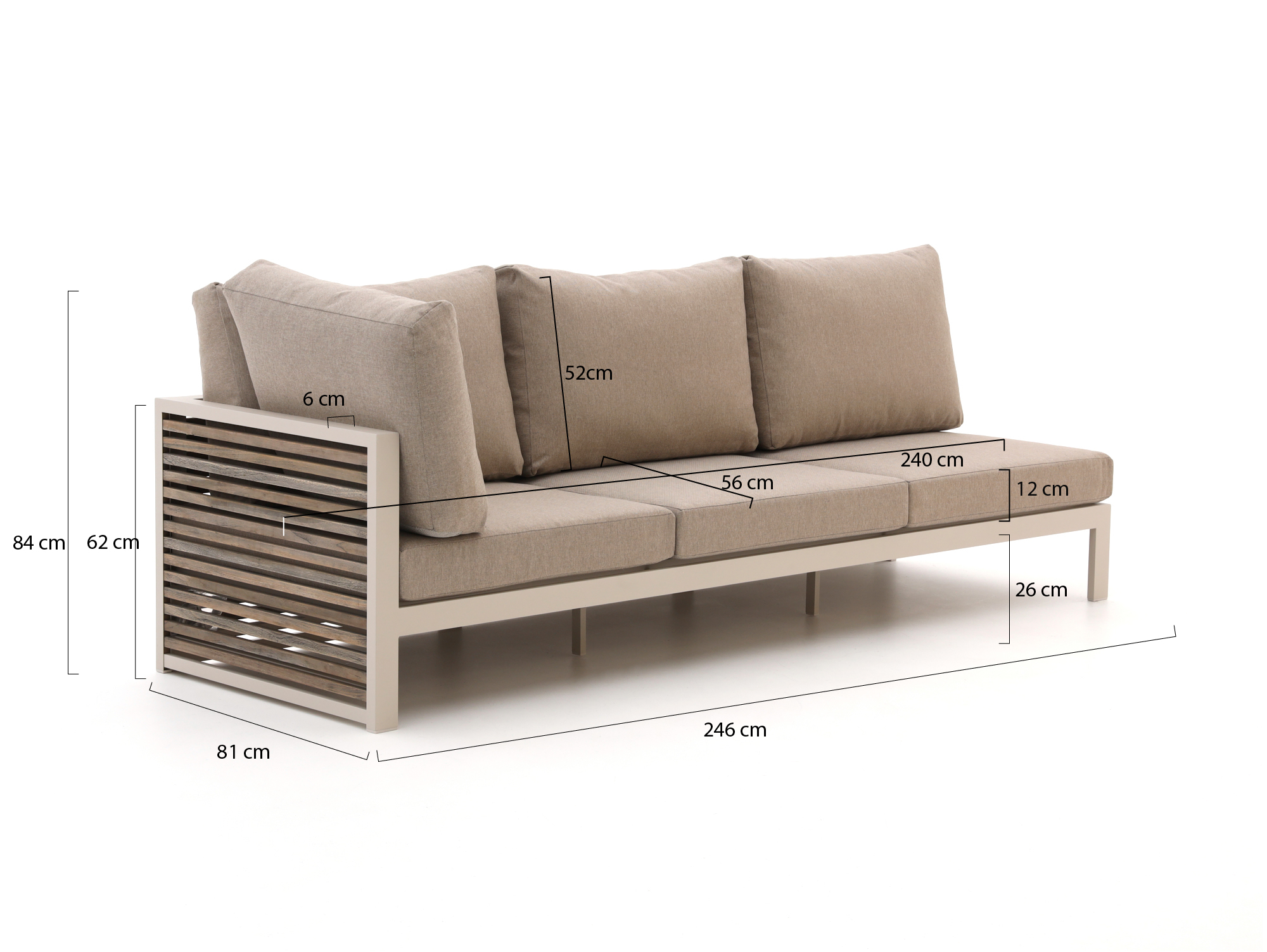 Bellagio Cadora lounge tuinbank 3-zits rechterarm 246cm
