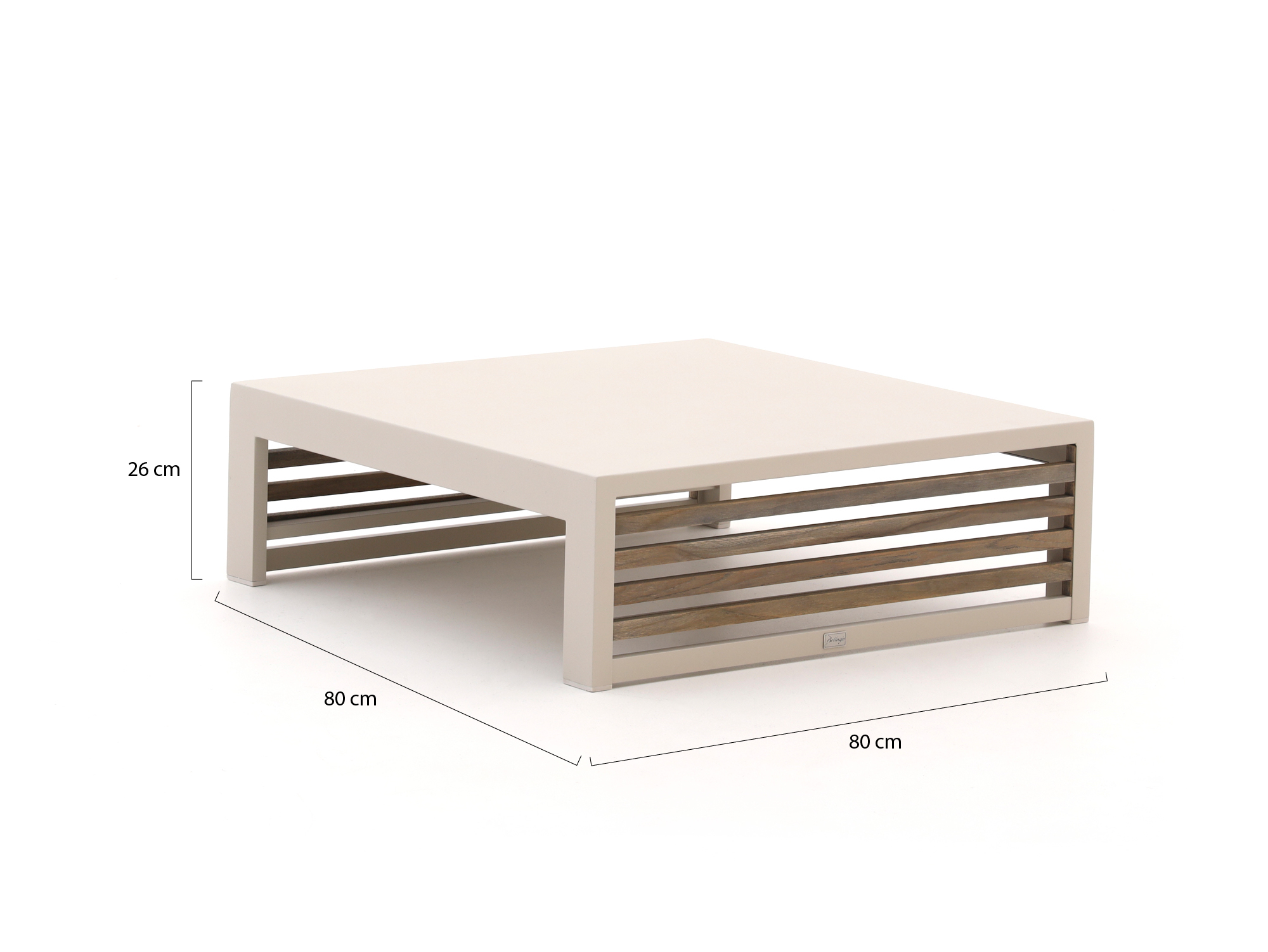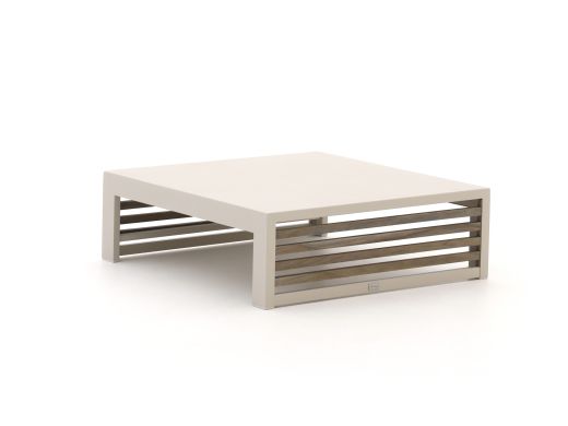 De Bellagio Cadora lounge tuintafel 80x80x26cm is een lage loungetafel voor bij je loungeset, met een aluminium frame en een teak inlegblad. Ideaal als je graag borrelt of koffie drinkt in je loungeset en een stevige tafel zoekt waar je makkelijk bij kunt. Door het lage model sluit hij mooi aan op loungekussens, zodat je niet steeds hoeft te rekken voor je hapjes en drankjes. Het aluminium onderstel in een warme beige tint is licht van gewicht en onderhoudsarm, het teak inlegblad geeft een natuurlijke houtlook erbij. Met zijn vierkante formaat van 80x80 cm heb je genoeg ruimte voor schalen en glazen zonder dat de tafel veel plek op je terras inneemt.
