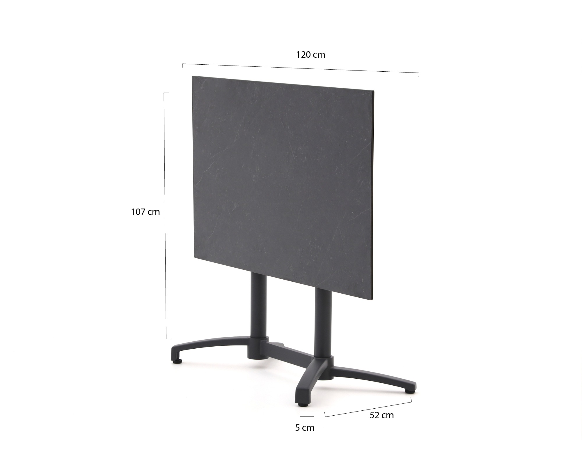 • Compact formaat 120x70 cm: Ideaal voor 2 tot 4 personen zonder dat je hele terras vol staat.