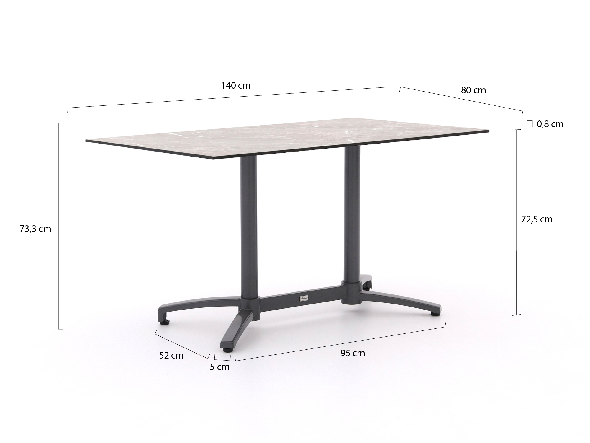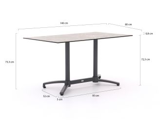 • Formaat 140x80 cm: Groot genoeg om met meerdere personen aan te eten, maar compact genoeg voor kleinere terrassen of balkons.