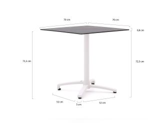 • Compact formaat 70x70 cm: Je zit gezellig met 2 tot 4 personen, maar houdt genoeg loopruimte over op je terras of balkon.