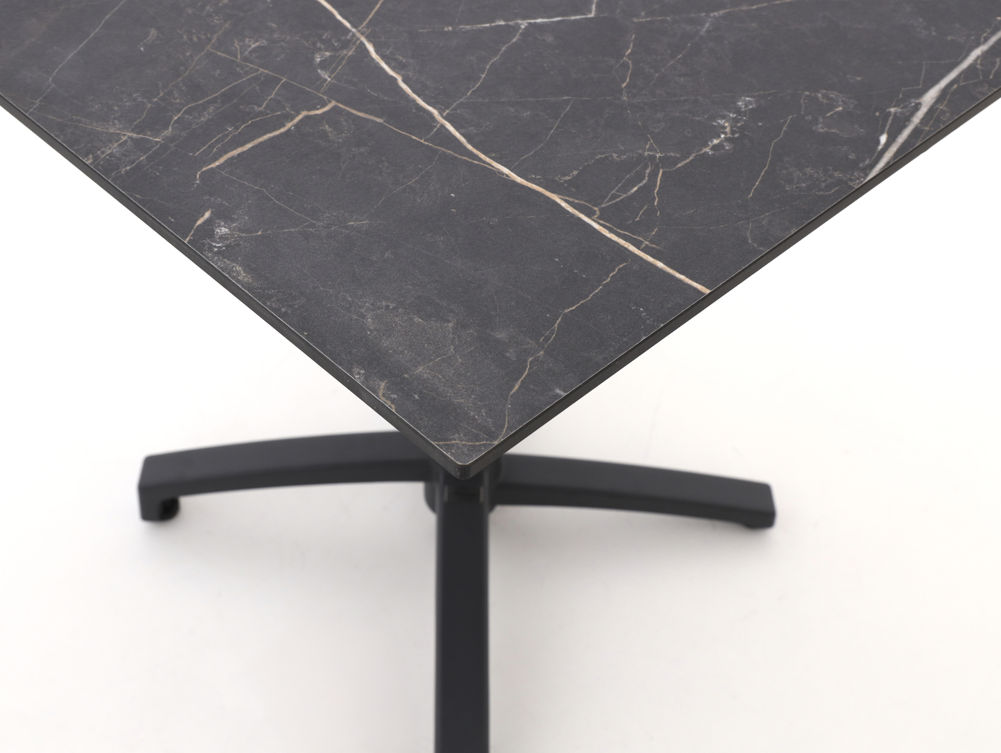 • Stevig kunststof HPL blad: Het blad is hard en vormvast, waardoor het goed tegen dagelijks gebruik kan bij eten, borrelen en spelletjes.