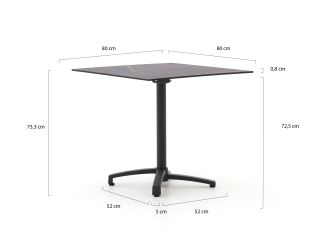 Bellagio Canzo klaptafel 80x80x73cm