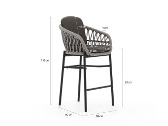 De Bellagio Cupello/ROUGH Y Ellips barset is een hoge tuintafel met 6 barstoelen, ideaal als je graag borrelt of een hapje eet op terras hoogte. Het aluminium frame is licht van gewicht, dus je schuift de barstoelen makkelijk aan of weg. Het kunststof tafelblad in houtlook kan wel tegen een stootje en is eenvoudig schoon te maken, handig als er eens een glas omgaat. Zoek je een strakke, stevige set waar je met een groep aan kunt staan én zitten, dan past deze barset goed bij je.