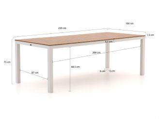Bellagio Dranera/Fidenza 220cm dining tuinset 7-delig stapelbaar aanpassen