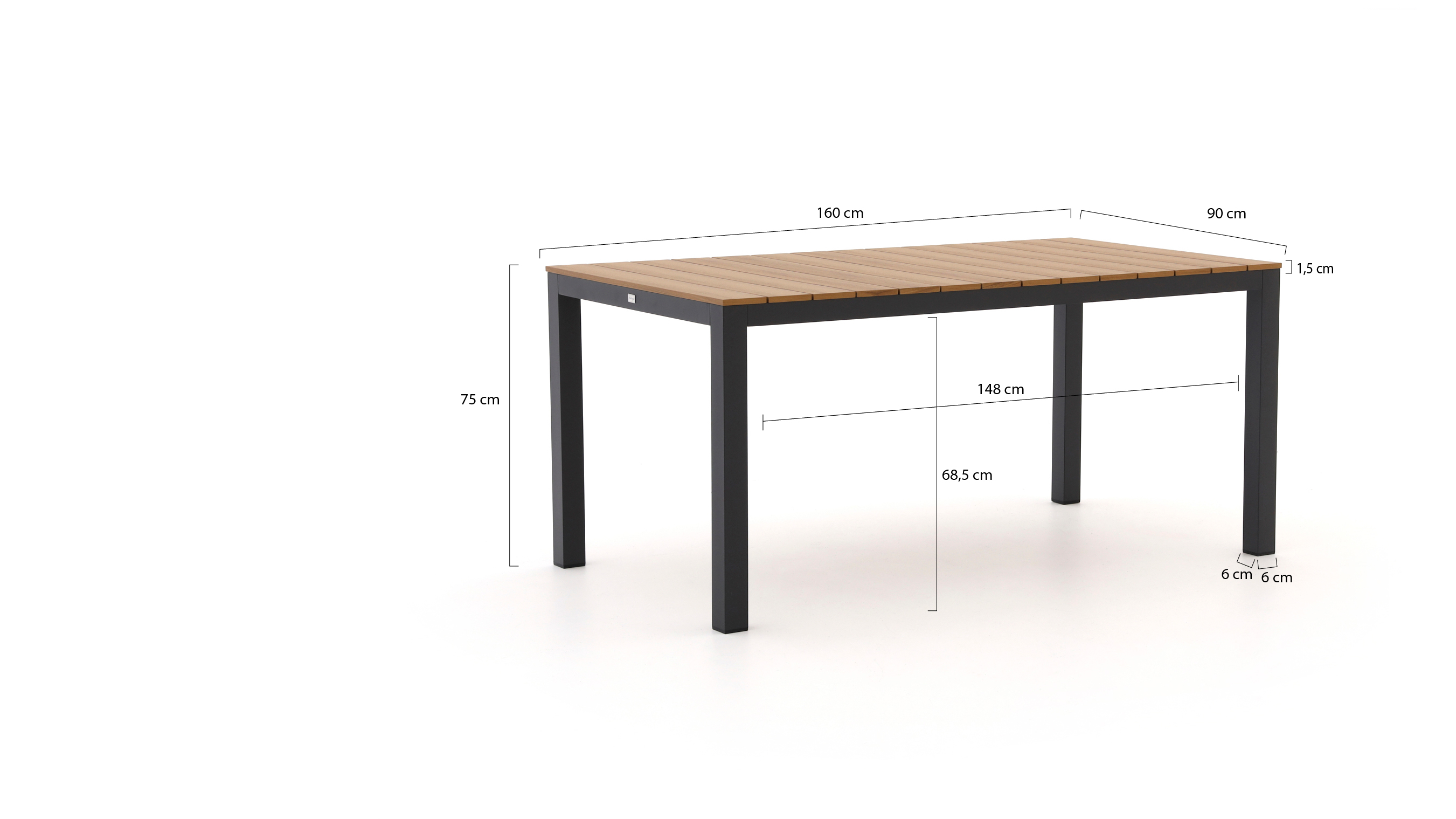 • Kunststof in houtlook: Het blad is water en vuilafstotend, waardoor je het na een regenbui of etentje snel weer schoon en droog hebt.