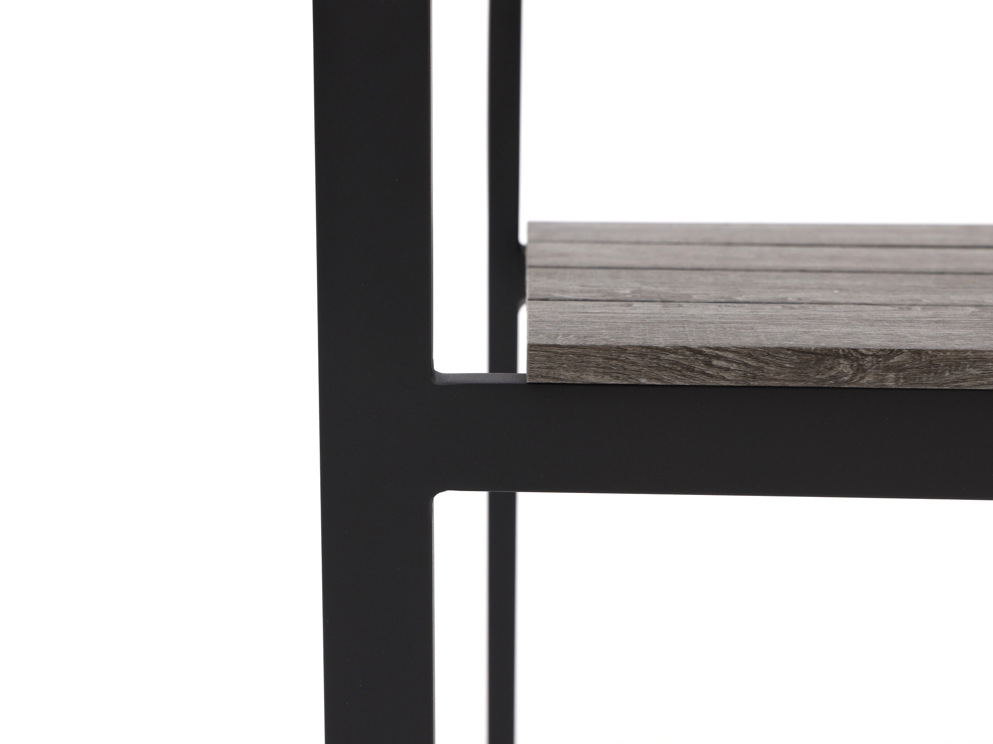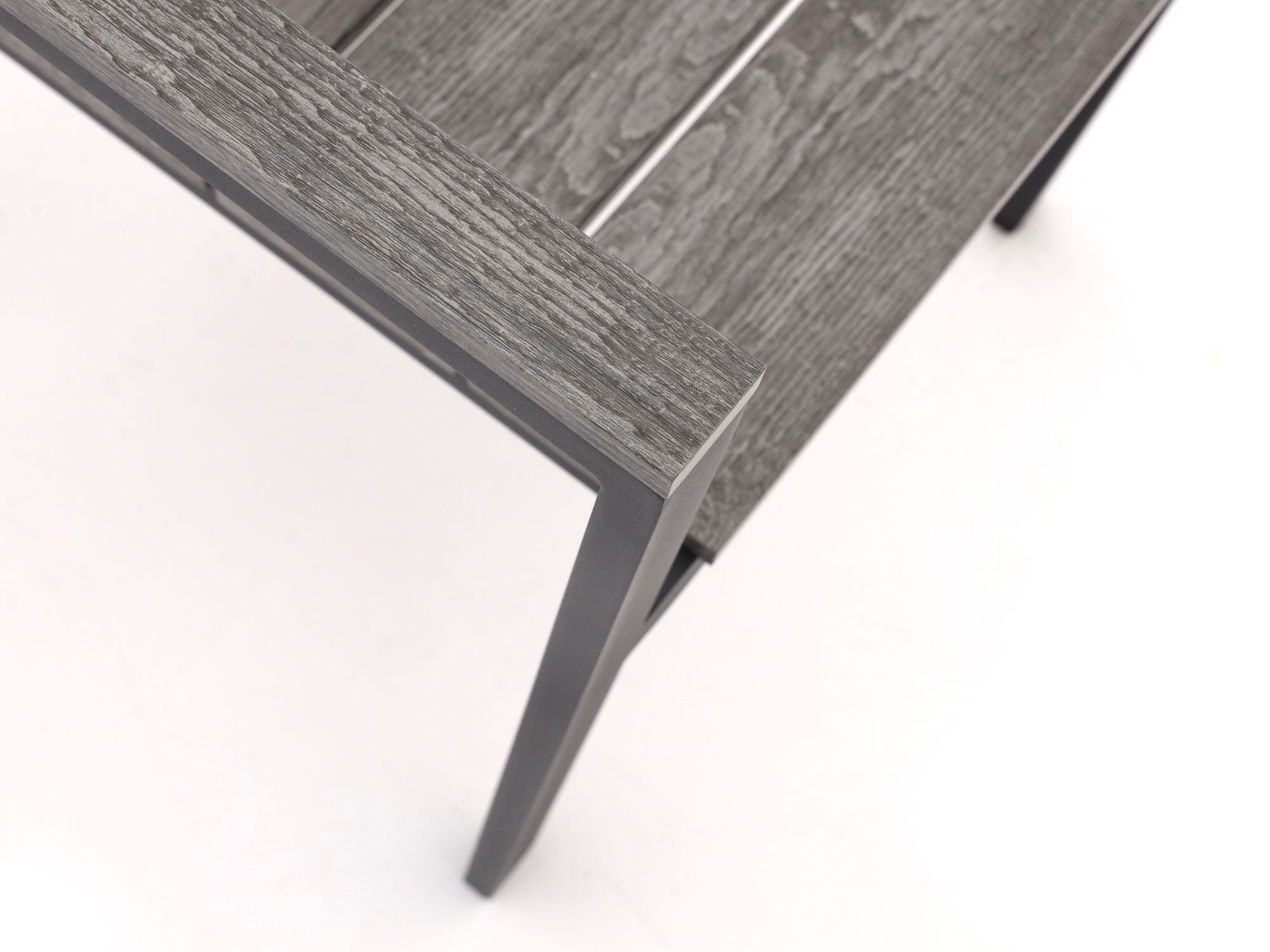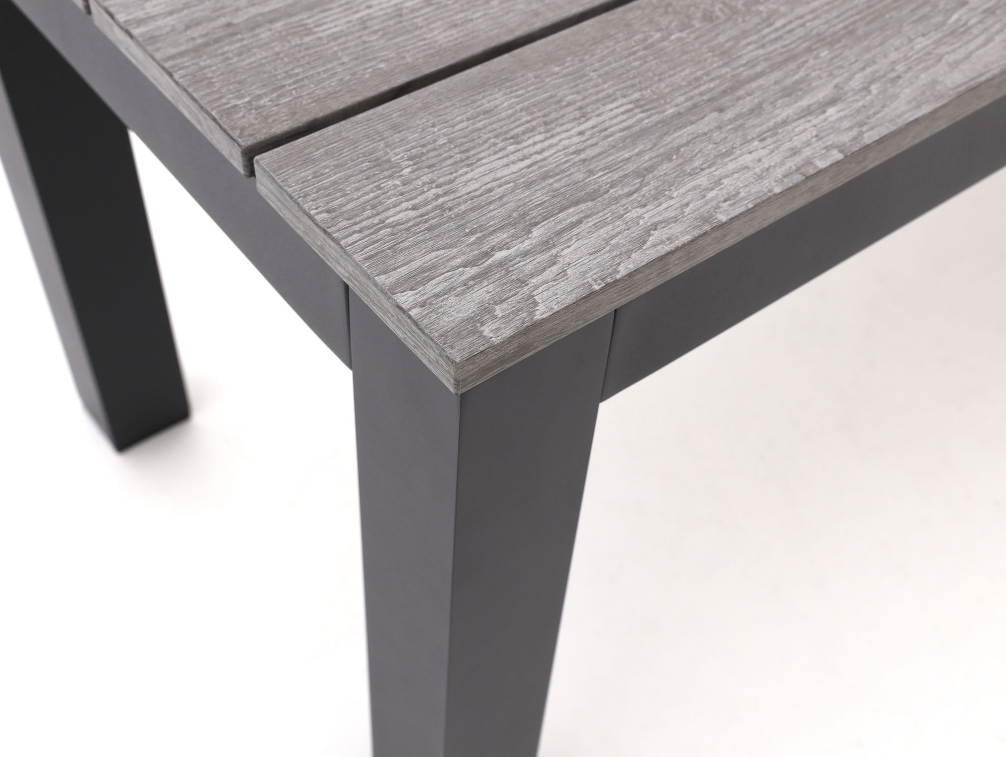 Onderhoudsvriendelijk polywood tafelblad: Het blad lijkt op hout, maar je hoeft het niet te behandelen. Even een doekje erover en klaar.