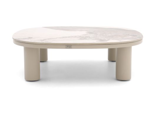 De Bellagio Gorizia lounge tuintafel 90x90x27cm is een lage, stevige loungetafel die goed past bij een loungeset waar je graag lang omheen zit. Door het sintered stone tafelblad kun je relaxed schalen, glazen en koffiekopjes neerzetten zonder snel bang te zijn voor krassen. Het vierkante blad van 90x90 cm geeft genoeg ruimte voor hapjes en drankjes als je met meerdere mensen buiten zit. De tafel is laag (27 cm), waardoor hij precies op loungehoogte staat: je pakt alles makkelijk van tafel zonder uit je relaxstand te komen. Het beige onderstel en blad van aluminium en sintered stone oogt rustig en neutraal, handig als je al genoeg kussens en accessoires met kleur hebt rondslingeren.