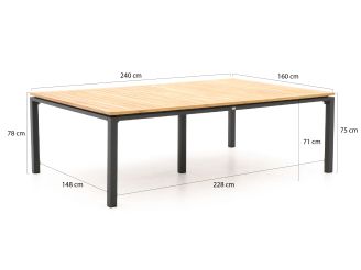 Bellagio Linosa dining tuintafel 240x160x75cm