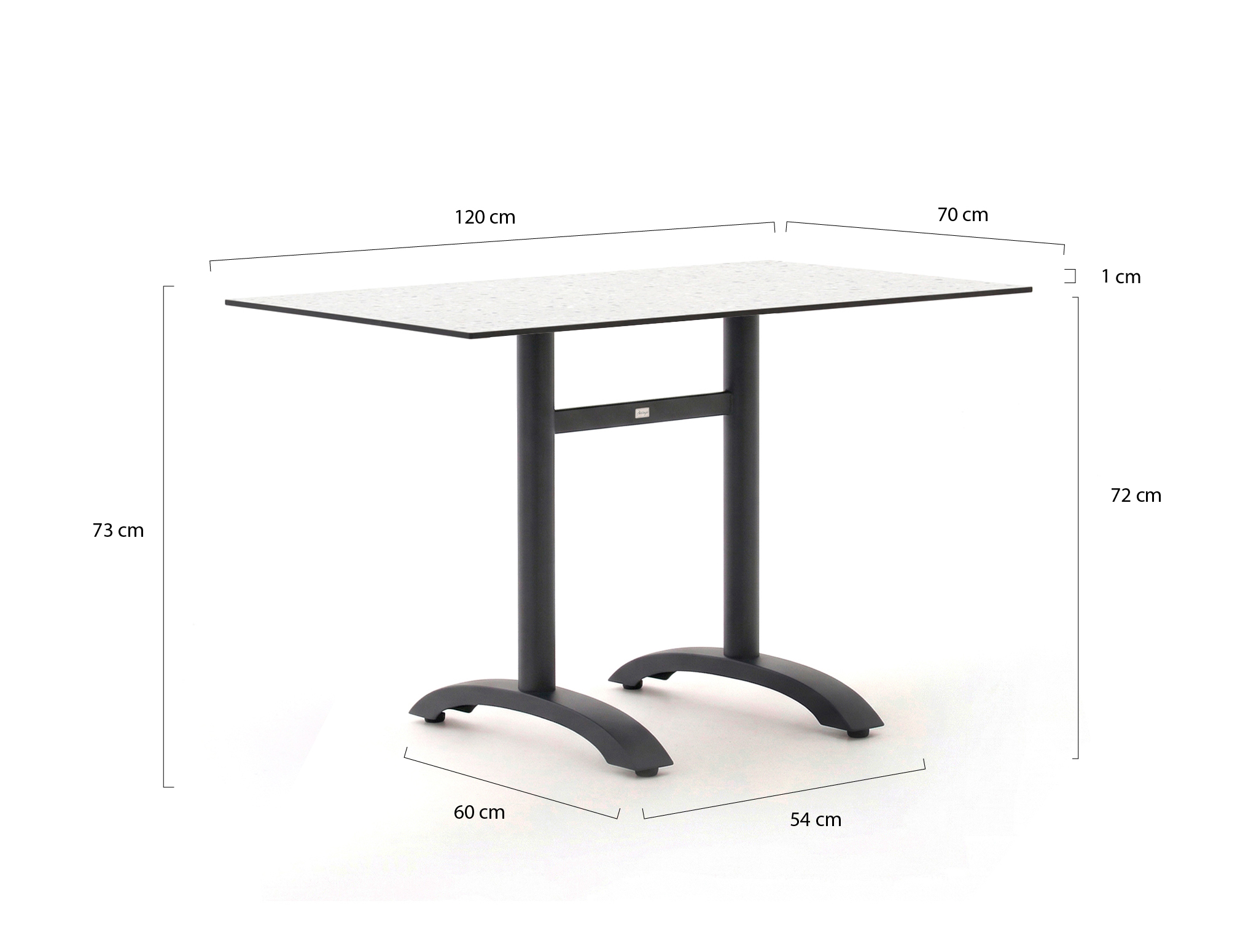 Bellagio tafelblad 120x70cm t.b.v. Canzo/Lisio/Orta pootstel (dubbel)   + 0,-