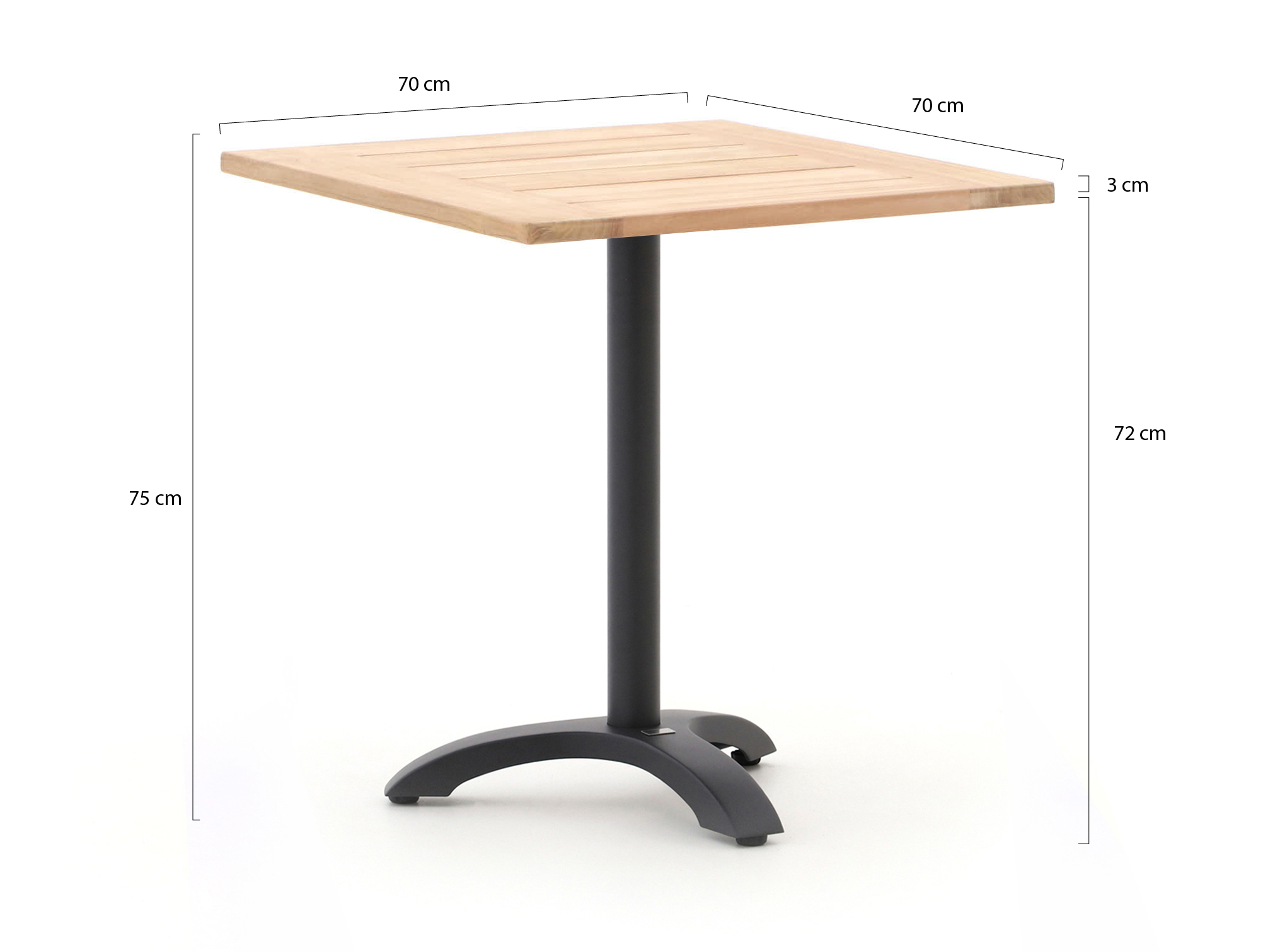 • Compact formaat 70x70cm: past makkelijk op een kleiner terras of balkon, zonder dat je hoeft te puzzelen met ruimte.