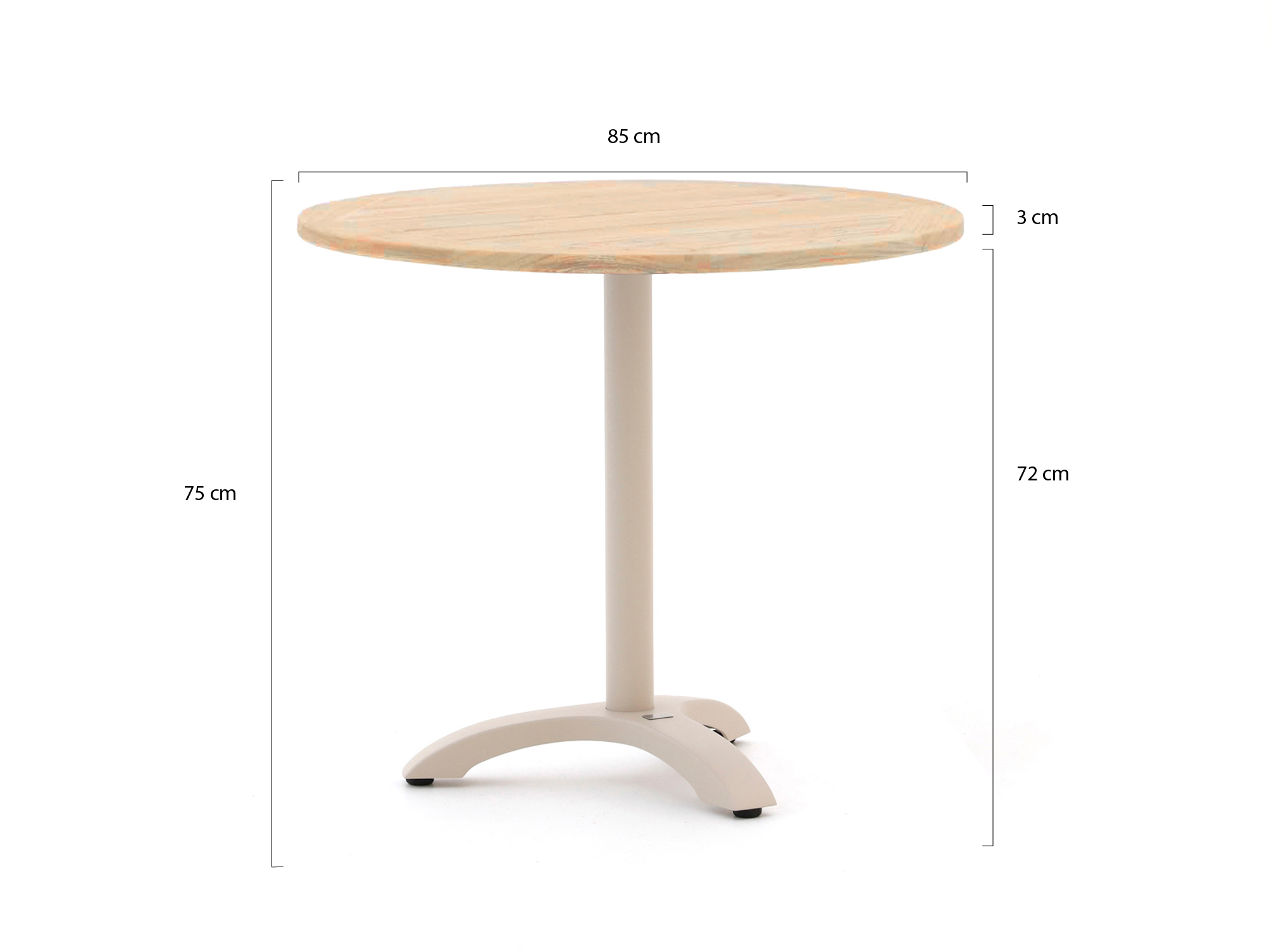 • Rond tafelblad ø 85 cm: je schuift makkelijk stoelen aan en niemand zit tegen een tafelhoek aan.