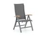 Ademende zitting van textileen: Zit comfortabel zonder kussen en ventileert goed op warme dagen. Na een buitje droogt het snel weer op, zodat je zo weer plaatsneemt.