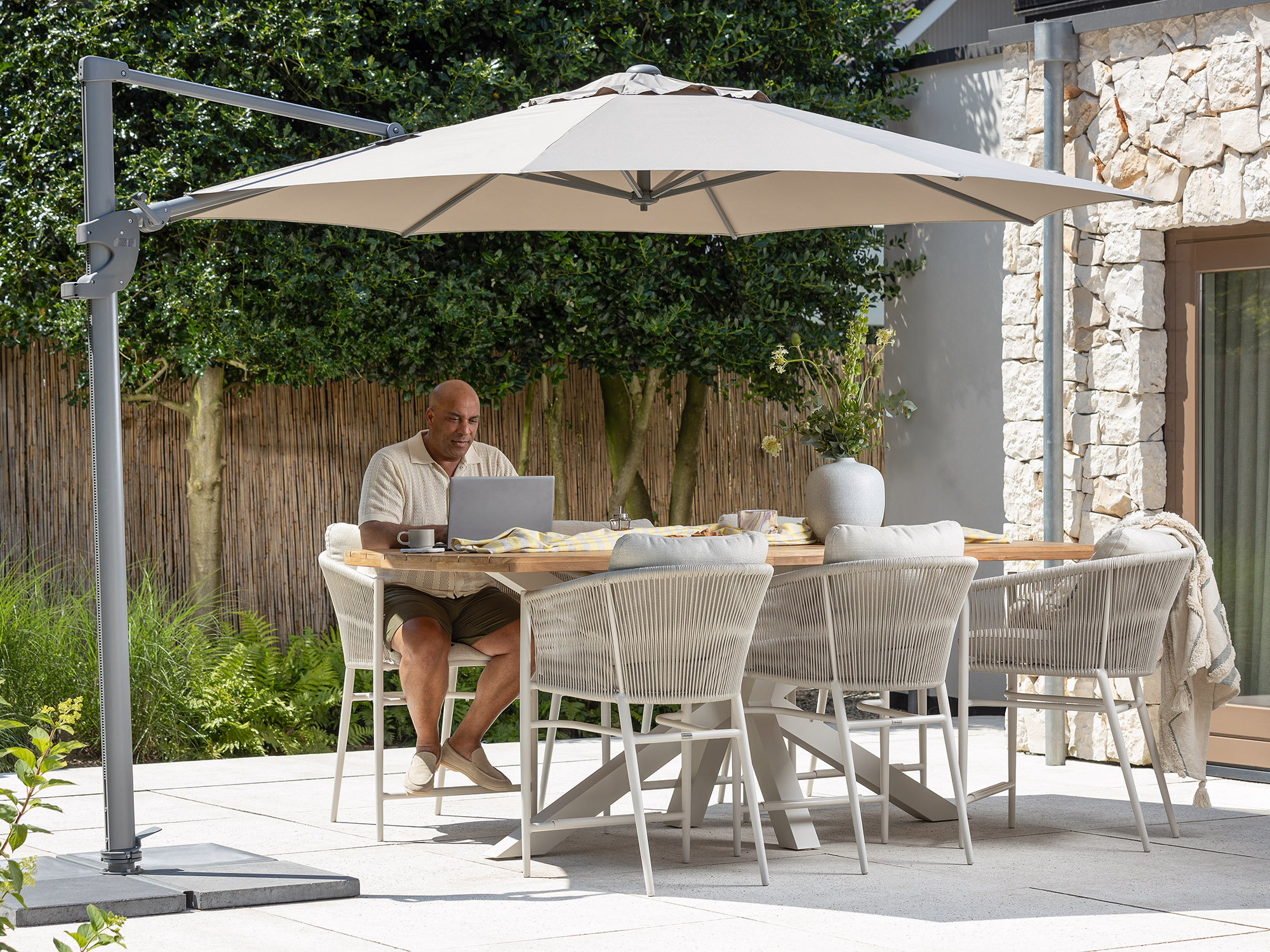 Bij een high dining set zit je net wat hoger dan aan een gewone tuintafel, waardoor je wat actiever en rechter zit. Dat is fijn als je veel eet, borrelt of spelletjes speelt buiten, maar toch relaxed wilt blijven zitten. Je stapt ook makkelijker aan en van tafel, wat handig is als je vaak even in en uit loopt tussen keuken en tuin.
