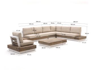 De Bellagio Pilago hoek loungeset is een fijne plek om met vrienden of familie te relaxen in je tuin. Met zijn zeven zitplaatsen biedt deze set genoeg ruimte voor iedereen. Het teakhouten frame in combinatie met het aluminium onderstel zorgt voor een stevige basis die tegen een stootje kan. De witte kussens geven een frisse uitstraling en zijn bovendien afritsbaar, dus makkelijk schoon te houden. En die hoekopstelling? Die maakt slim gebruik van je tuinruimte, zodat je meer plek overhoudt voor andere dingen.