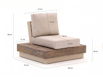 • Volledig teakhouten frame en zitting: sterk natuurproduct dat het hele jaar door buiten kan staan