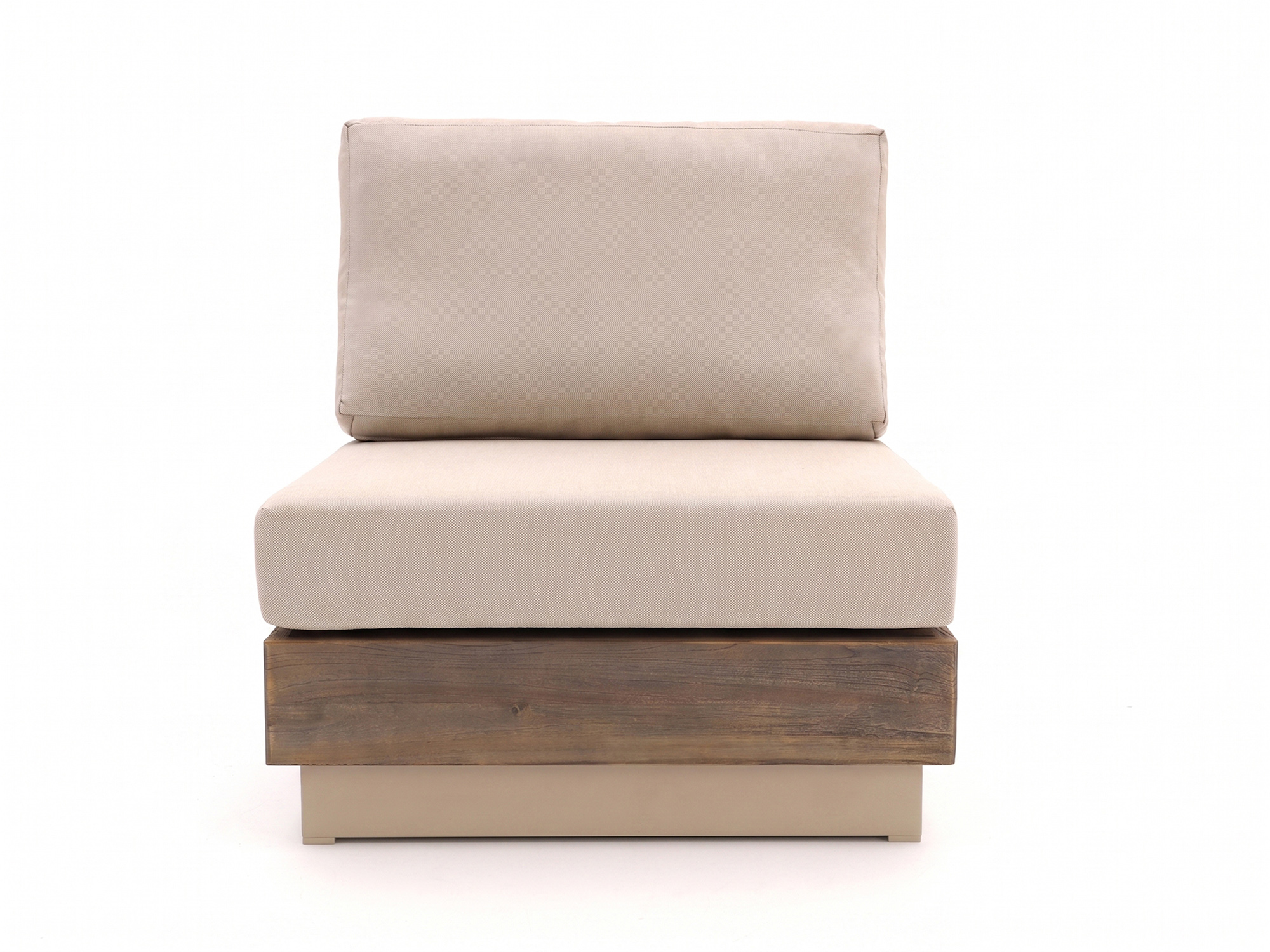 De Bellagio Pilago lounge tussenmodule is een losse loungestoel zonder armleuningen, ideaal als extra zitplek of om je bestaande Pilago loungeset uit te breiden. Het frame is van sterk teakhout, een natuurproduct dat tegen alle weersomstandigheden kan, zodat je deze module met een gerust hart buiten laat staan. De beige kussens met polyester hoes worden meegeleverd, dus je kunt direct zitten zonder eerst op zoek te moeten naar passende kussens. De hoezen zijn afritsbaar, waardoor je ze makkelijk eraf haalt om ze te reinigen na een zomer vol etentjes, borrels en logeerpartijen in de tuin.