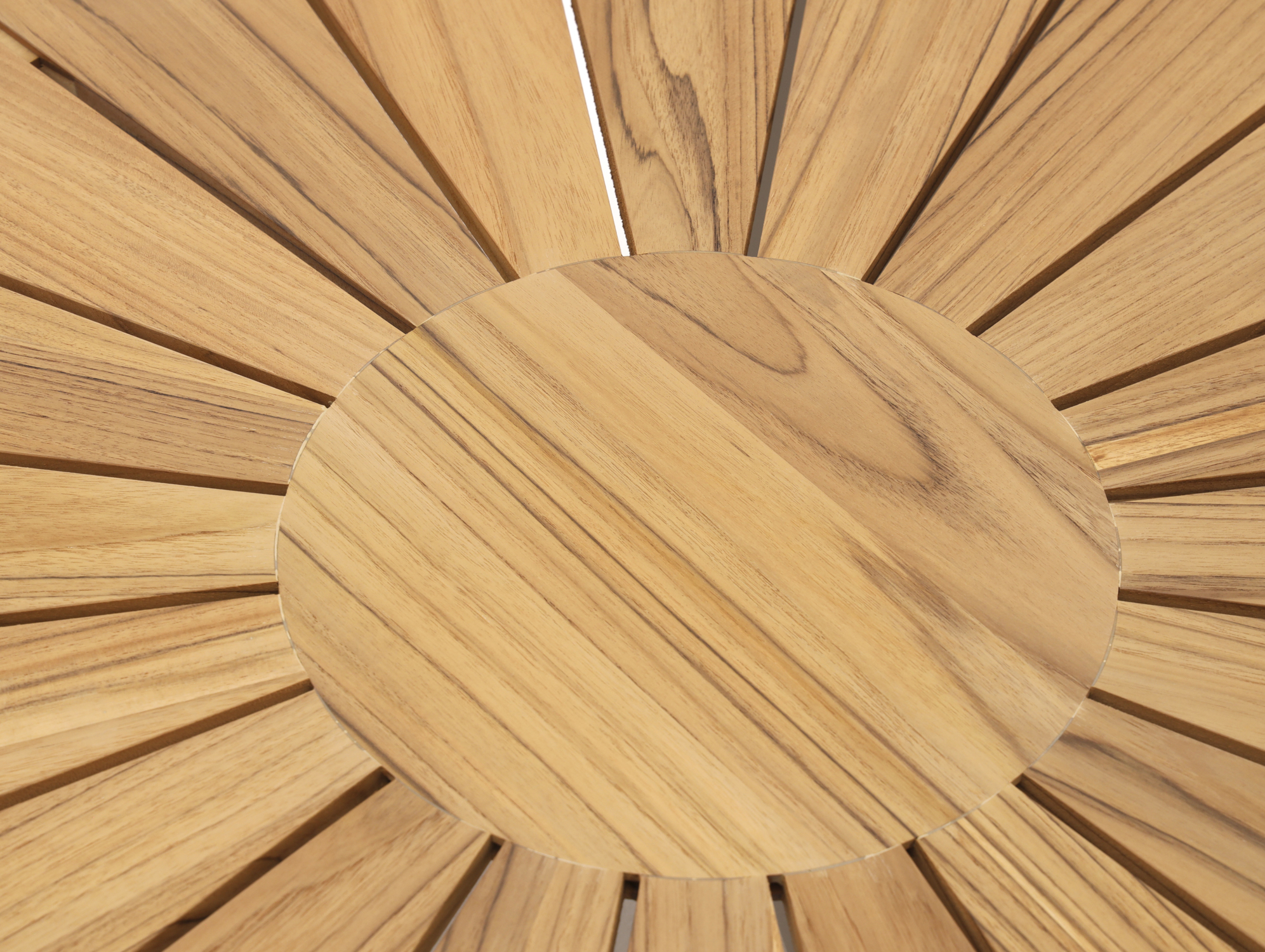 • Teakhouten tafelblad: Sterk natuurproduct dat het hele jaar buiten kan staan, ideaal als je de tafel niet steeds wilt verslepen.
