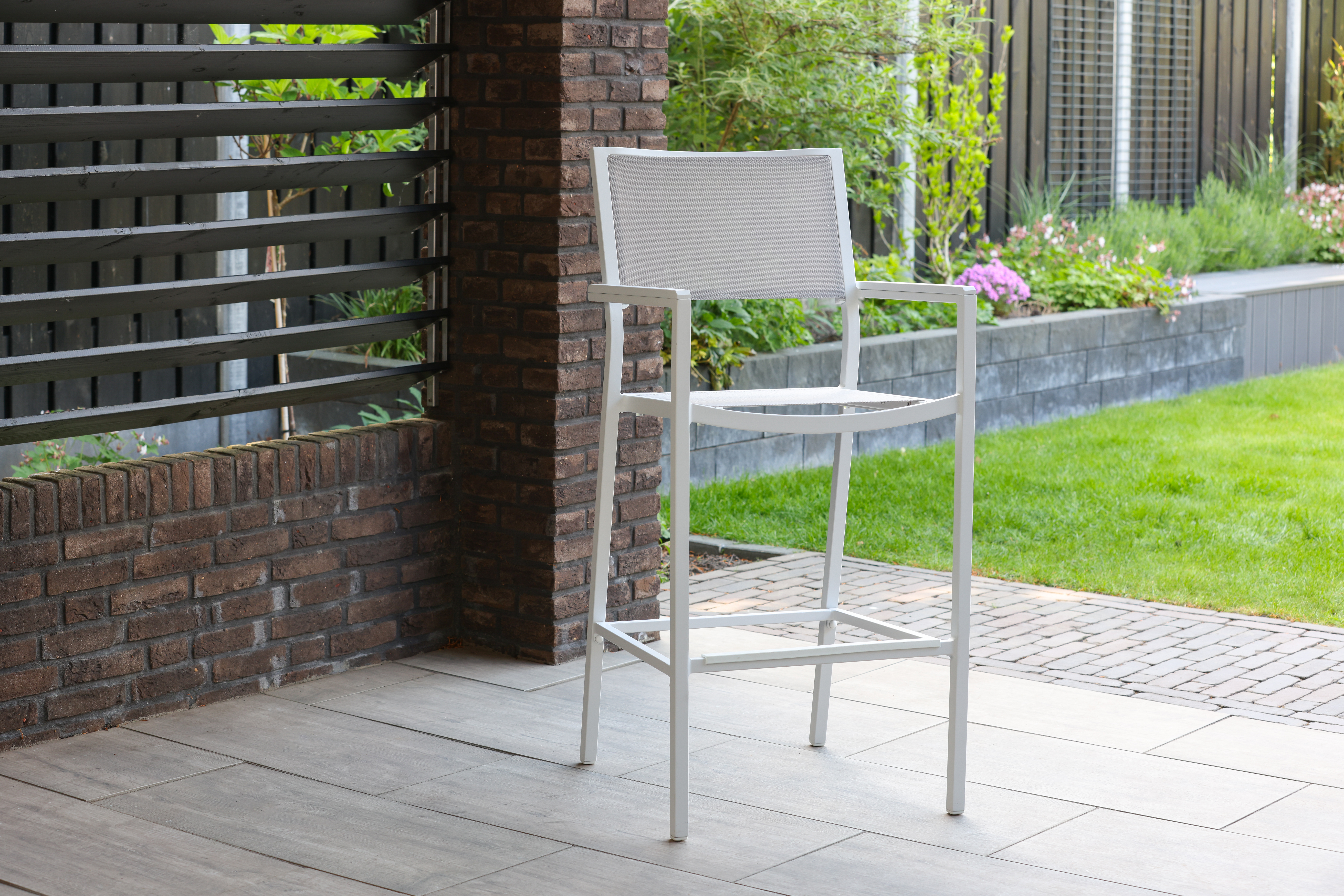 Deze barkruk neemt minder ruimte in beslag dan een gewone tuinstoel