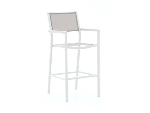 De Bellagio Roma barstoel in wit is een stijlvolle toevoeging aan je buitenruimte. Deze barstoel combineert elegantie met functionaliteit en is perfect voor gezellige borrels aan je bartafel. Het aluminium frame is licht van gewicht en onderhoudsarm, waardoor je meer tijd hebt om te genieten van het buitenleven. De zitting van textileen vormt zich naar je lichaam en biedt een comfortabele zit, zelfs als je langer blijft hangen. Met de Bellagio Roma barstoel ben je altijd klaar voor een spontane toast op het leven, want wie wil er nou niet op hoog niveau genieten?