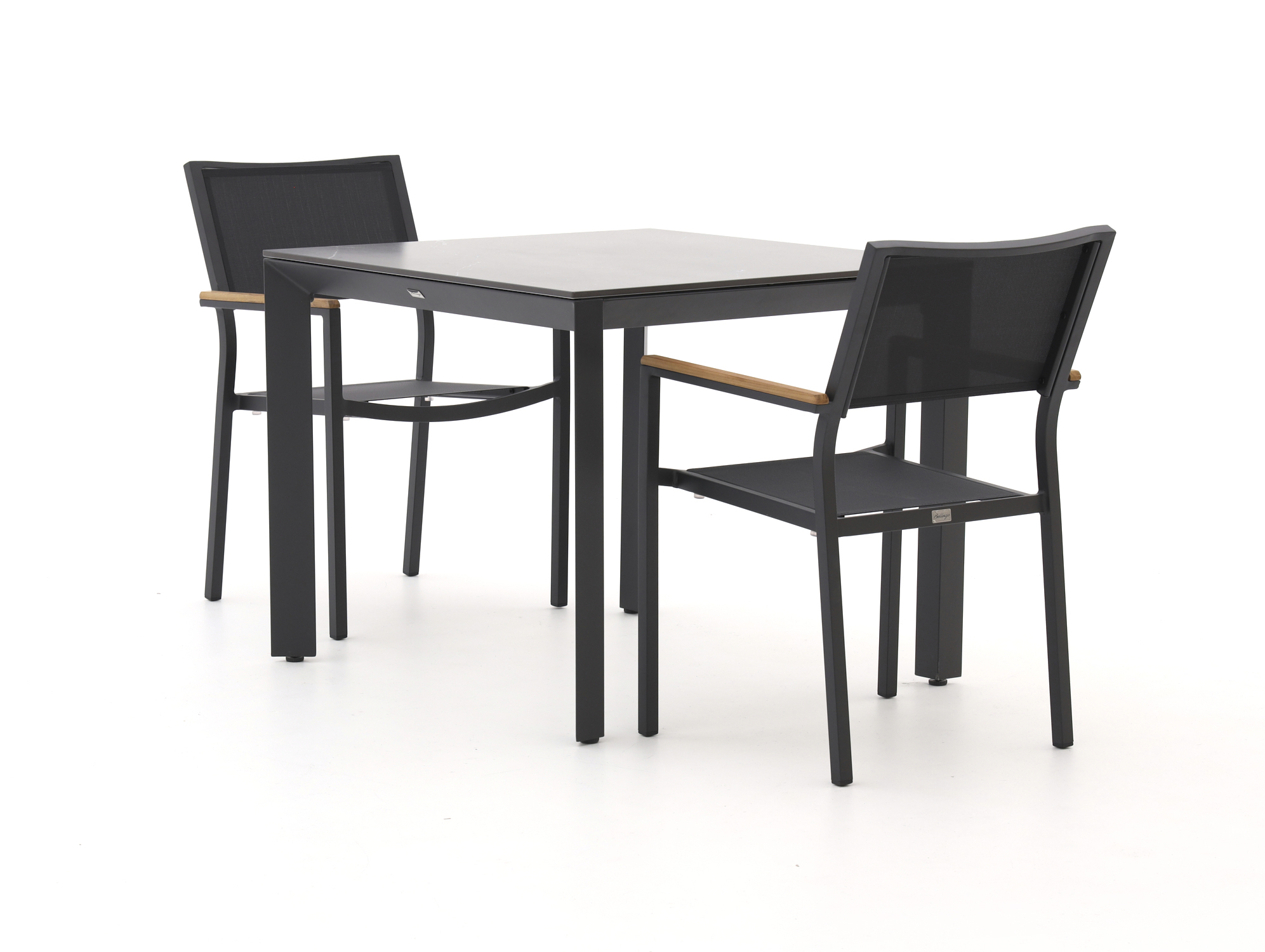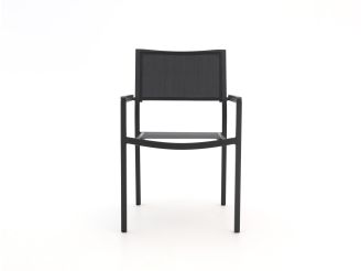De Bellagio Roma/Sestino dining tuinset is een compacte vierkante tuinset voor 4 personen, ideaal als je een kleinere tuin of balkon hebt maar wel fijn wilt dineren buiten. De combinatie van een aluminium frame met textileen zittingen zorgt voor een lichte stoel die toch stevig zit, ook als je wat langer aan tafel blijft hangen. Het sintered stone tafelblad in zwart is sterk, hitte en krasbestendig, waardoor je gerust met pannen, glazen en kinderspeelgoed kunt schuiven zonder snel beschadigingen te zien. Dankzij de stapelbare stoelen ruim je de set makkelijk op of maak je snel ruimte vrij op je terras. Zoek je een praktische, moderne set waarmee je jarenlang zorgeloos buiten kunt eten, dan zit je met deze Roma/Sestino goed.
