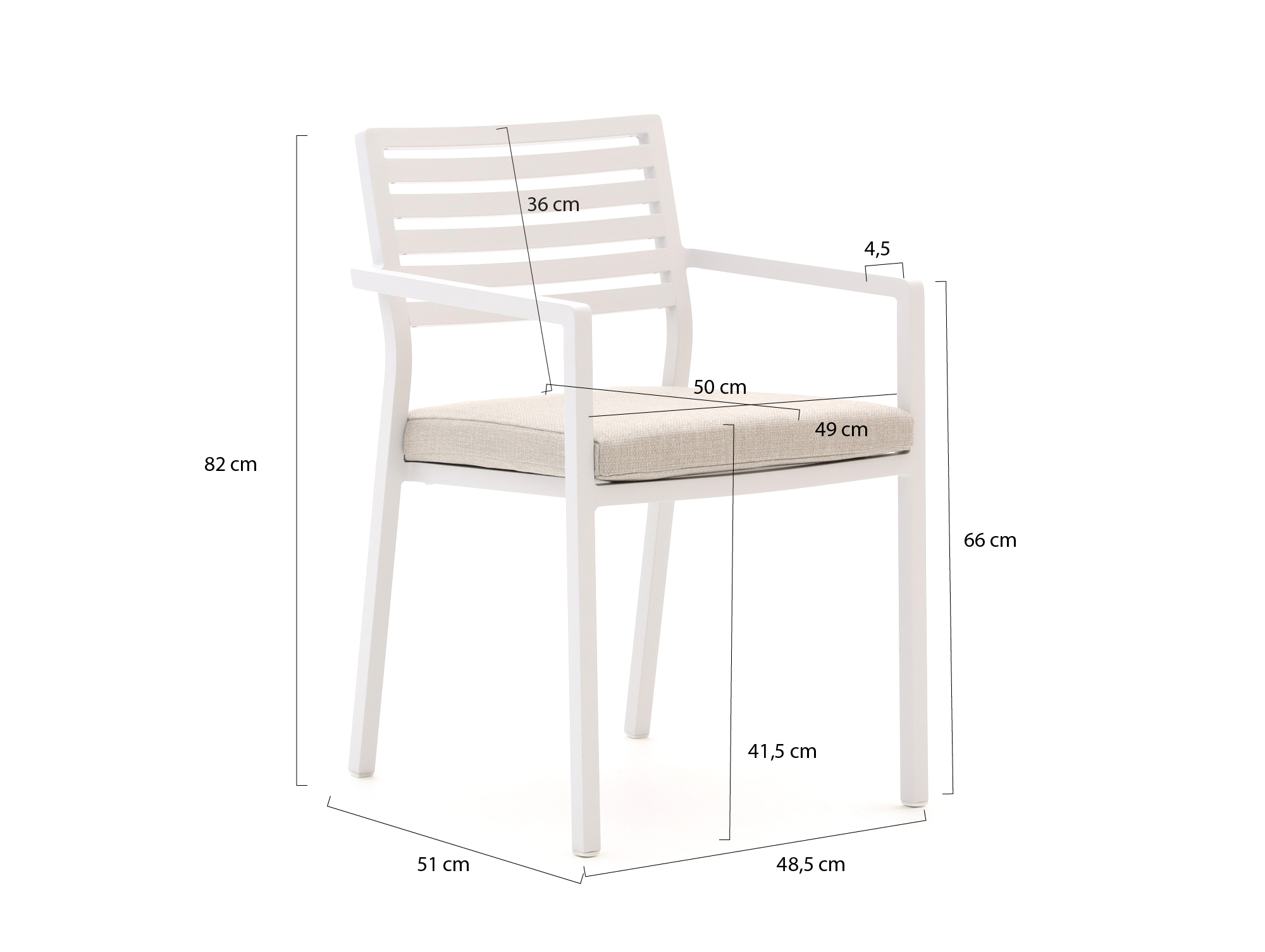 • Kleur stoel: Wit - Ecru