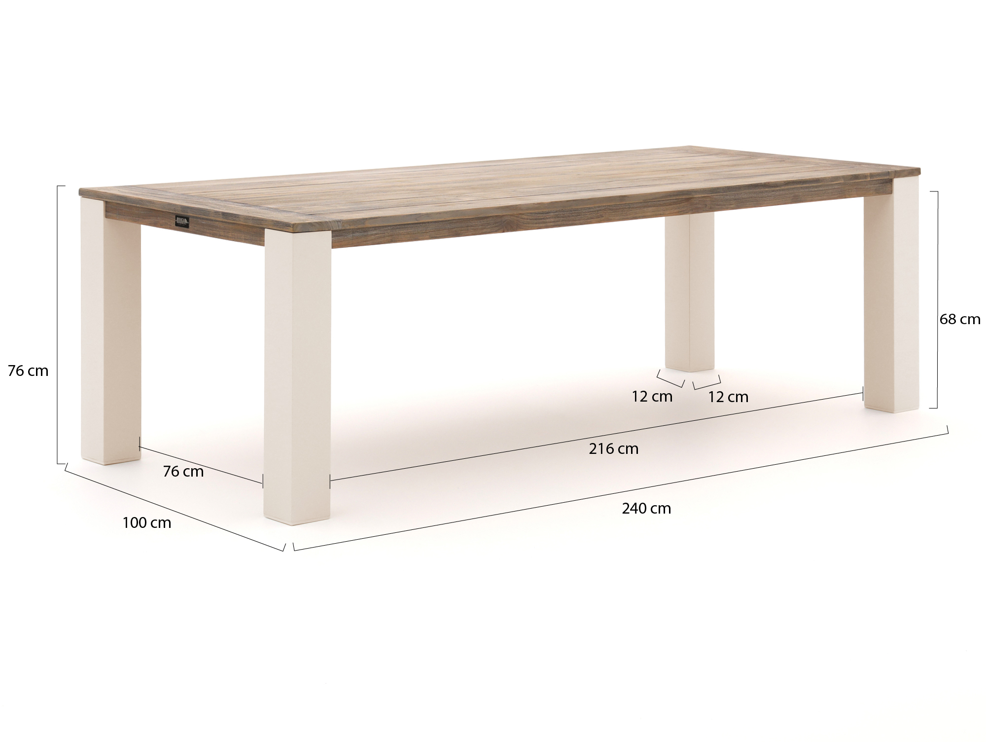 • Teakhouten tafelblad: Het sterke teakhout kan het hele jaar door buiten staan, ideaal als je de tafel niet steeds wilt verplaatsen.