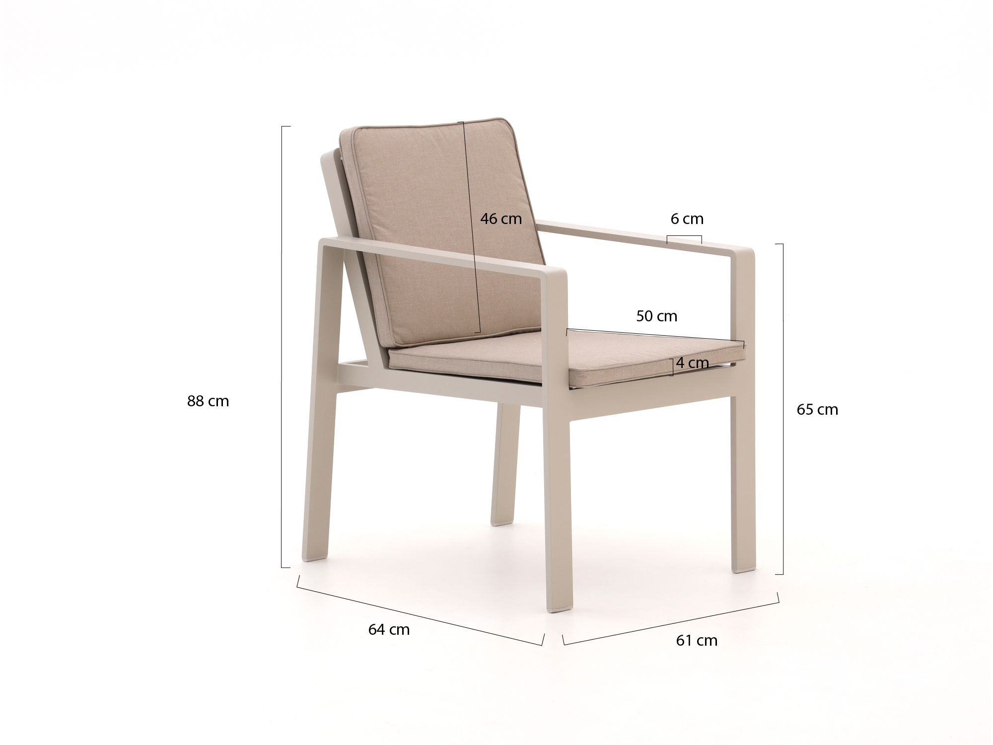 • Neutrale, rustige kleurstelling: De combinatie van hout en zandkleurige kussens laat zich makkelijk combineren met de rest van je tuin.