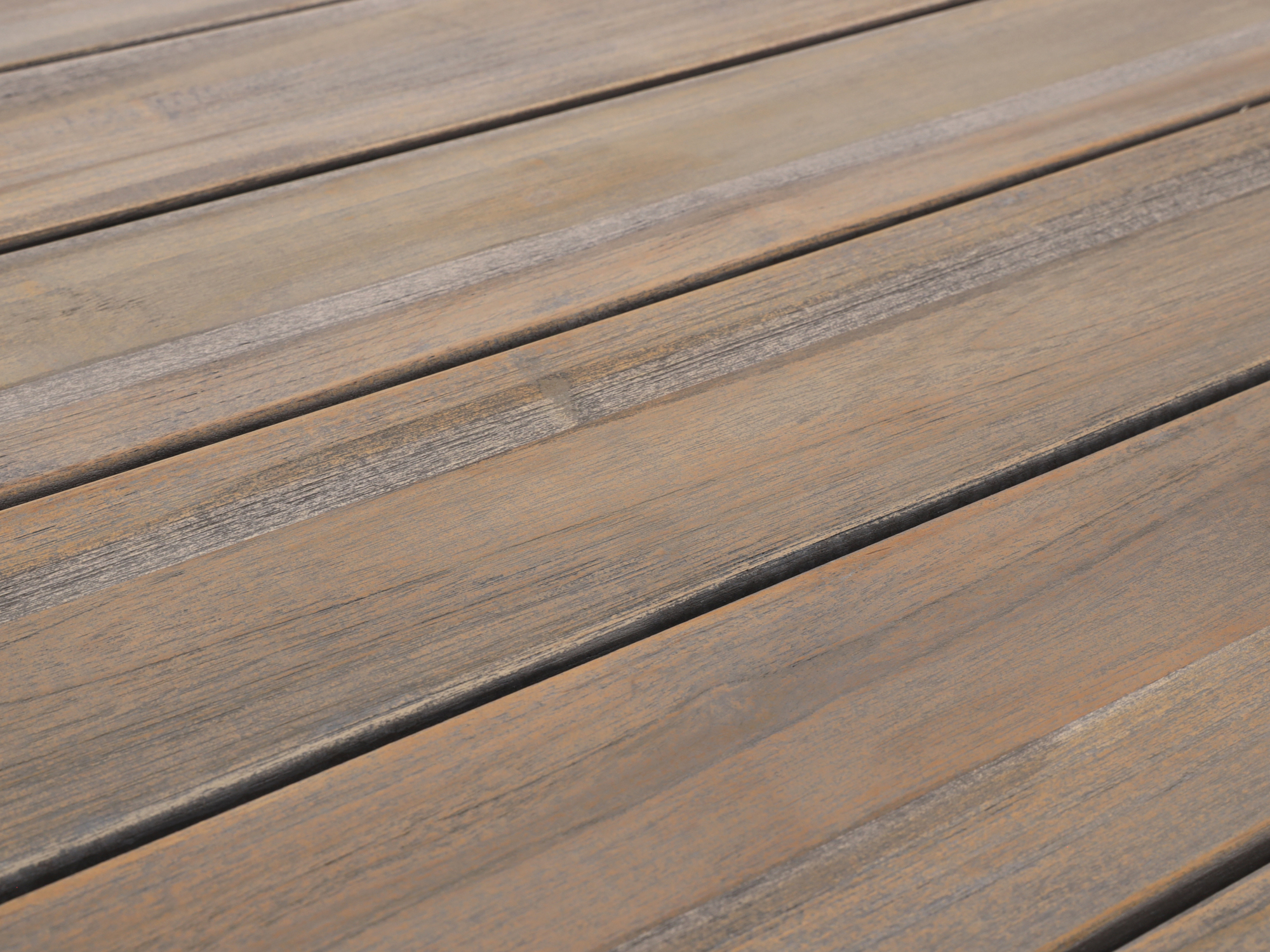 • Old teak greywash blad: Het blad heeft een vergrijsde houtlook, waardoor vlekjes en gebruikssporen minder snel opvallen.