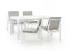 Met de Bellagio Vezzano/Menzano 160cm dining tuinset haal je een stukje stijl en comfort naar je tuin. Deze 5-delige set, uitgevoerd in fris wit, is een echte blikvanger en biedt plek voor vier personen. Ideaal voor lange zomeravonden met vrienden of familie. De stoelen zijn voorzien van comfortabele kussens en een zitting van textileen, dat zich naar je lichaam vormt. Zo zit je altijd lekker, zelfs als de gesprekken tot in de late uurtjes doorgaan. Het aluminium frame van zowel de tafel als de stoelen is onderhoudsarm en roest niet, waardoor je meer tijd hebt om te genieten van je buitenruimte.