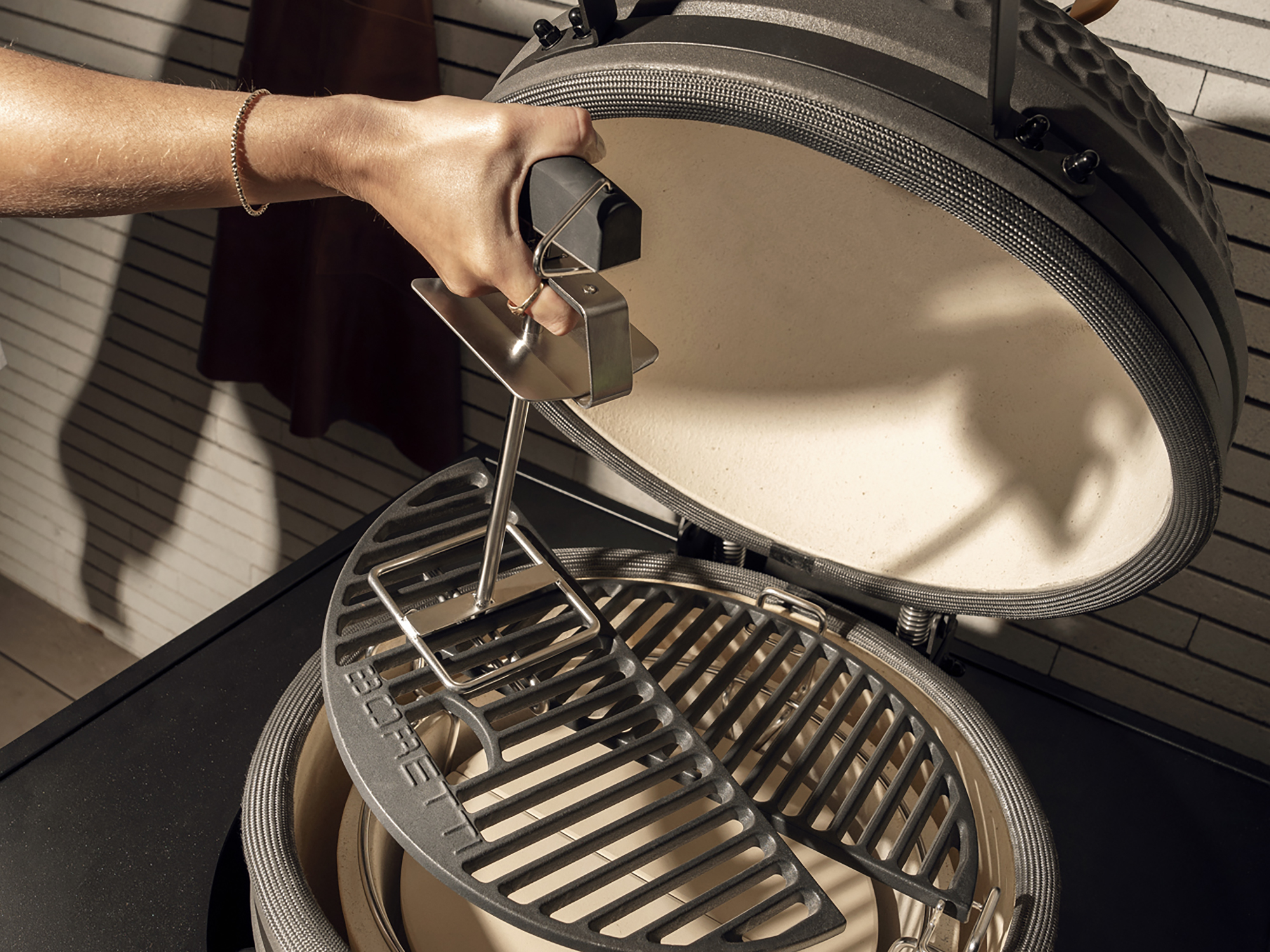 • Je tilt een heet rooster veilig en gecontroleerd op zonder je handen te branden