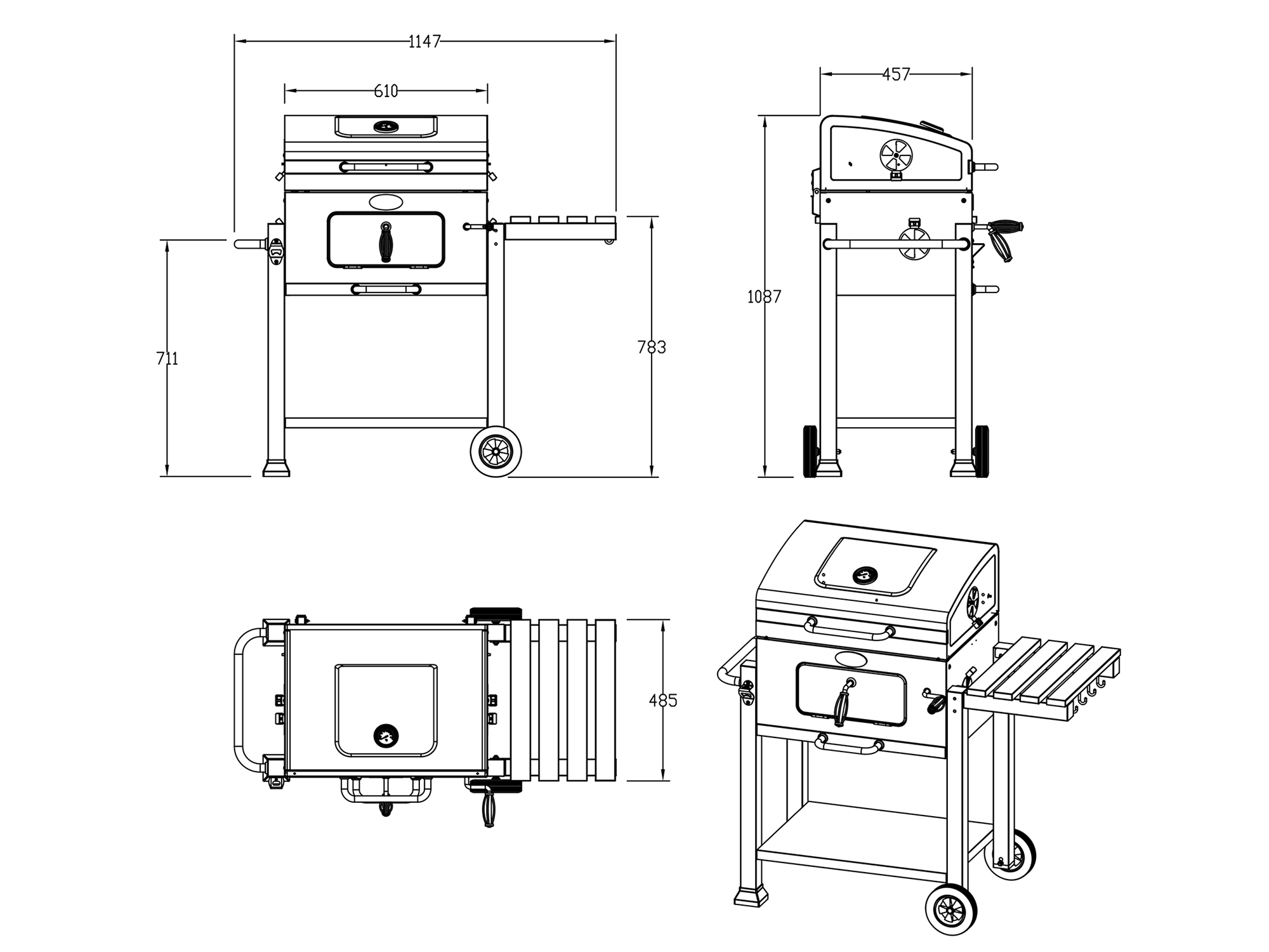 • Door de wielen verplaats je de barbecue gemakkelijk naar een andere plek