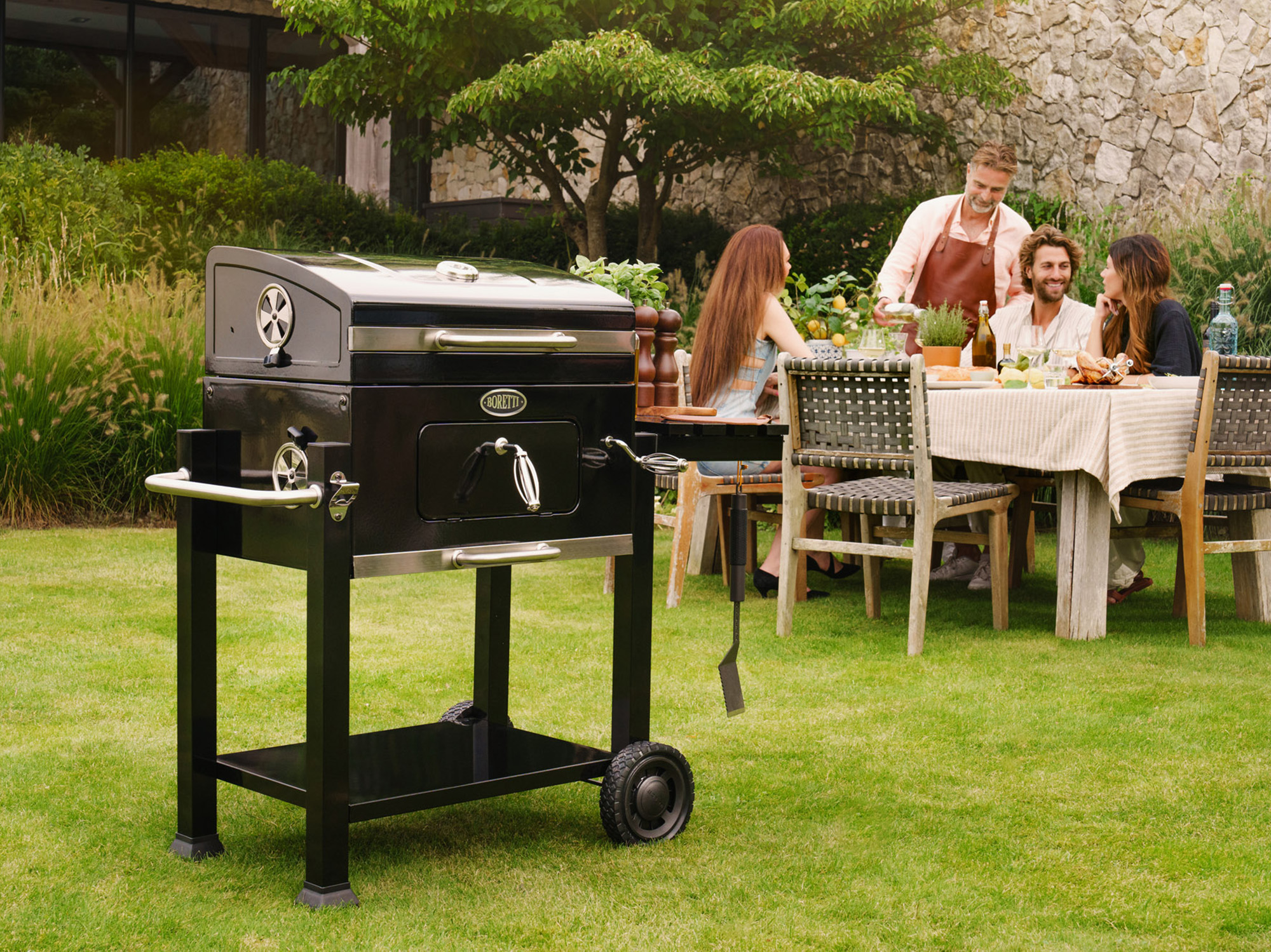 Met zijn afmetingen van ca. 113,5 cm diep, 66,8 cm breed en 108,5 cm hoog staat de Boretti Carbone stevig én op werkhoogte. De geëmailleerde roosters reinig je na gebruik het makkelijkst als ze nog een beetje warm zijn: even met een borsteltje erover en je bent zo klaar voor de volgende ronde grillplezier.