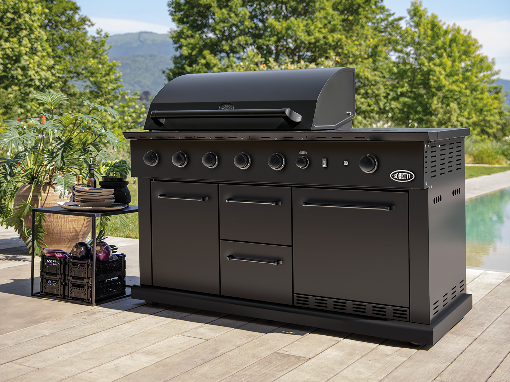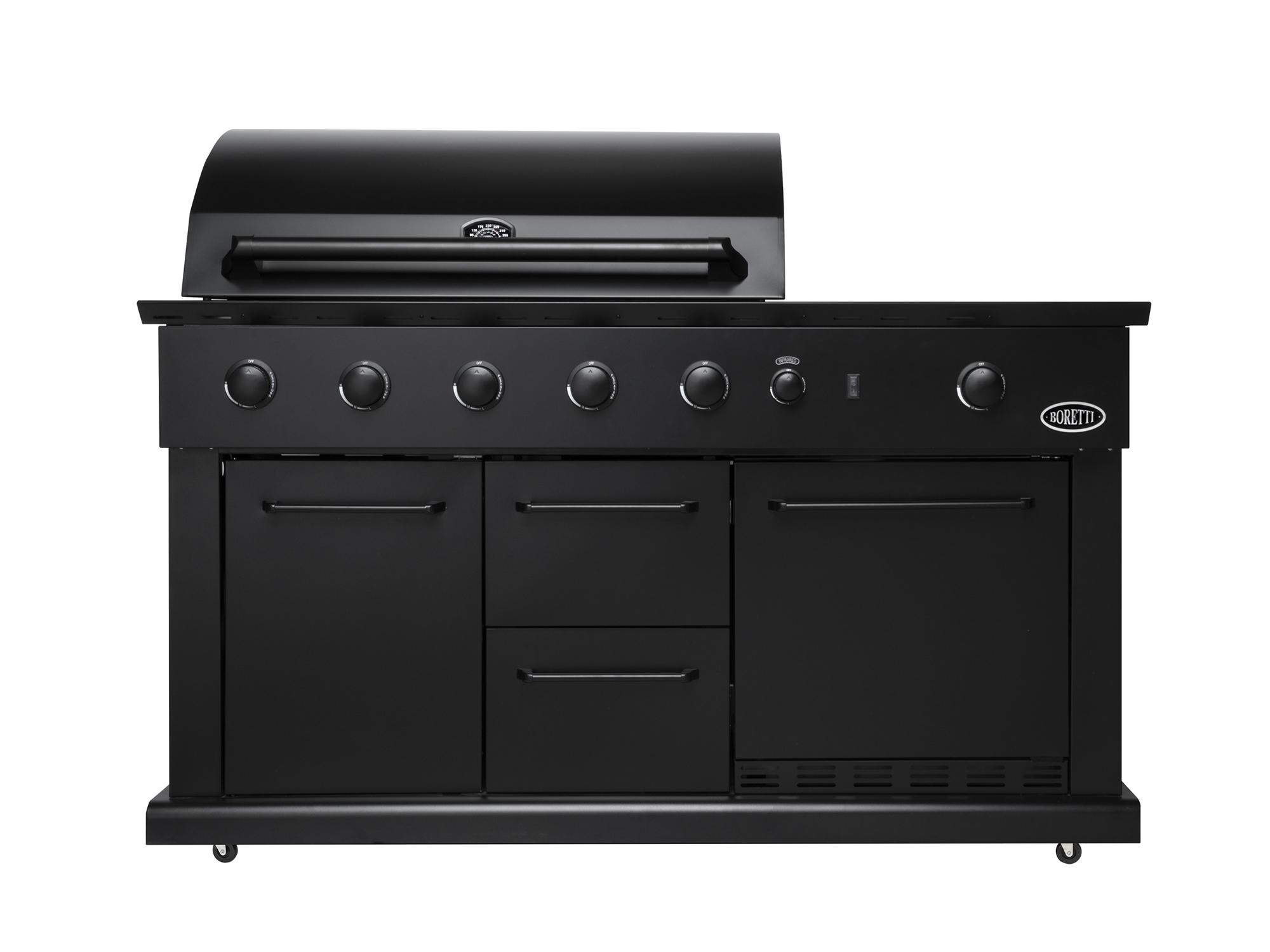 Met de Boretti Luciano Nero gas buitenkeuken maak je van je terras een volwaardige buitenkeuken. Deze gasbarbecue is uitgevoerd in zwart metaal en biedt een royaal kookoppervlak van 91x45,2 cm. Dankzij de geïntegreerde koelkast, het brede werkblad en de kastjes heb je alles bij de hand: van vlees en groenten tot sausjes en drankjes. Je kookt buiten net zo comfortabel als binnen, maar dan met meer sfeer.