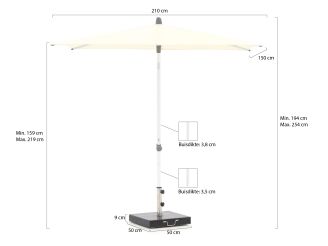 • Het doek van de parasol is volledig in hoogte verstelbaar