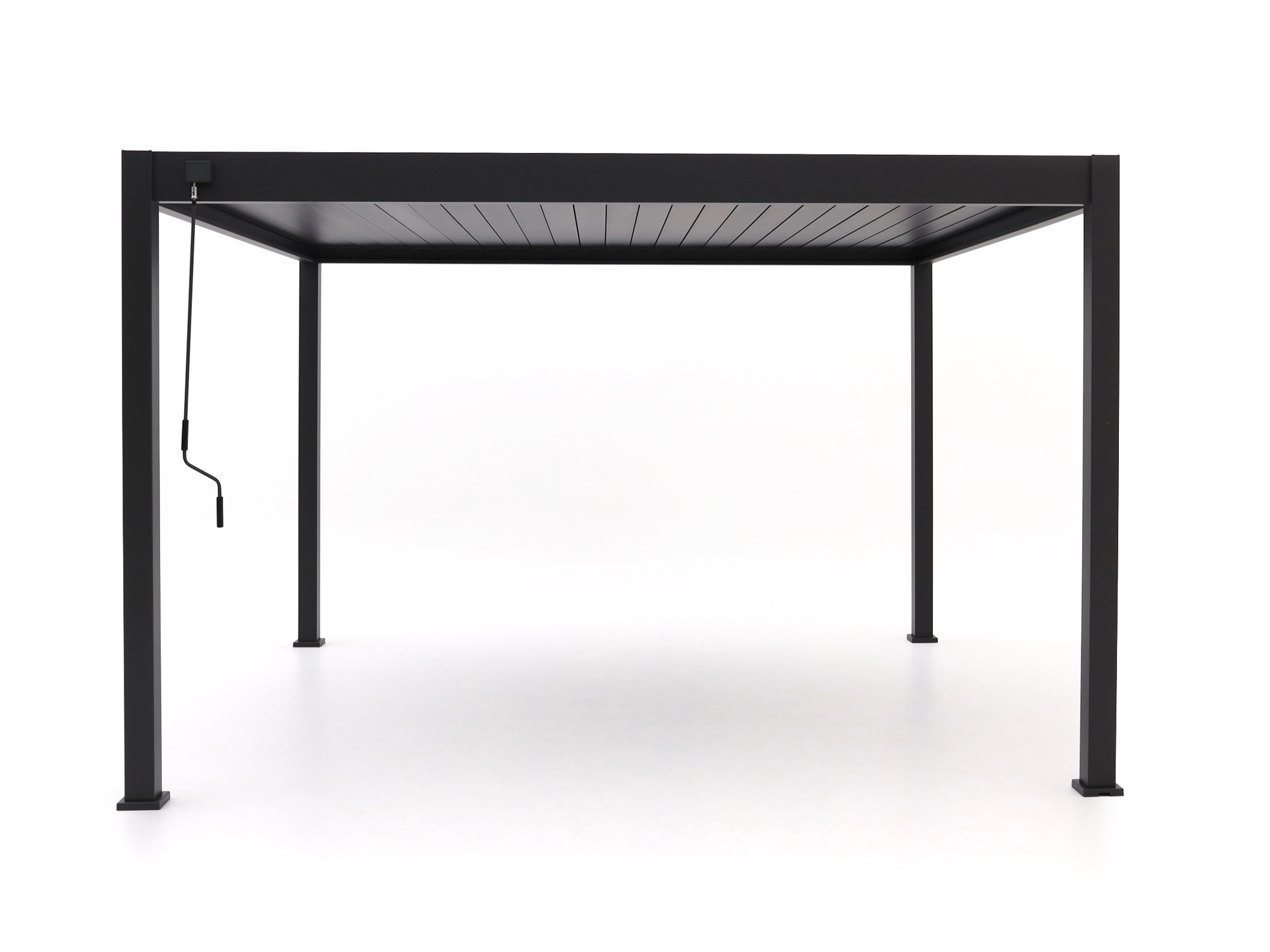Je kantelt de lamellen handmatig tot 135°, zodat je zelf bepaalt hoeveel zon, schaduw of frisse lucht je doorlaat. Precies goed voor elk moment van de dag.