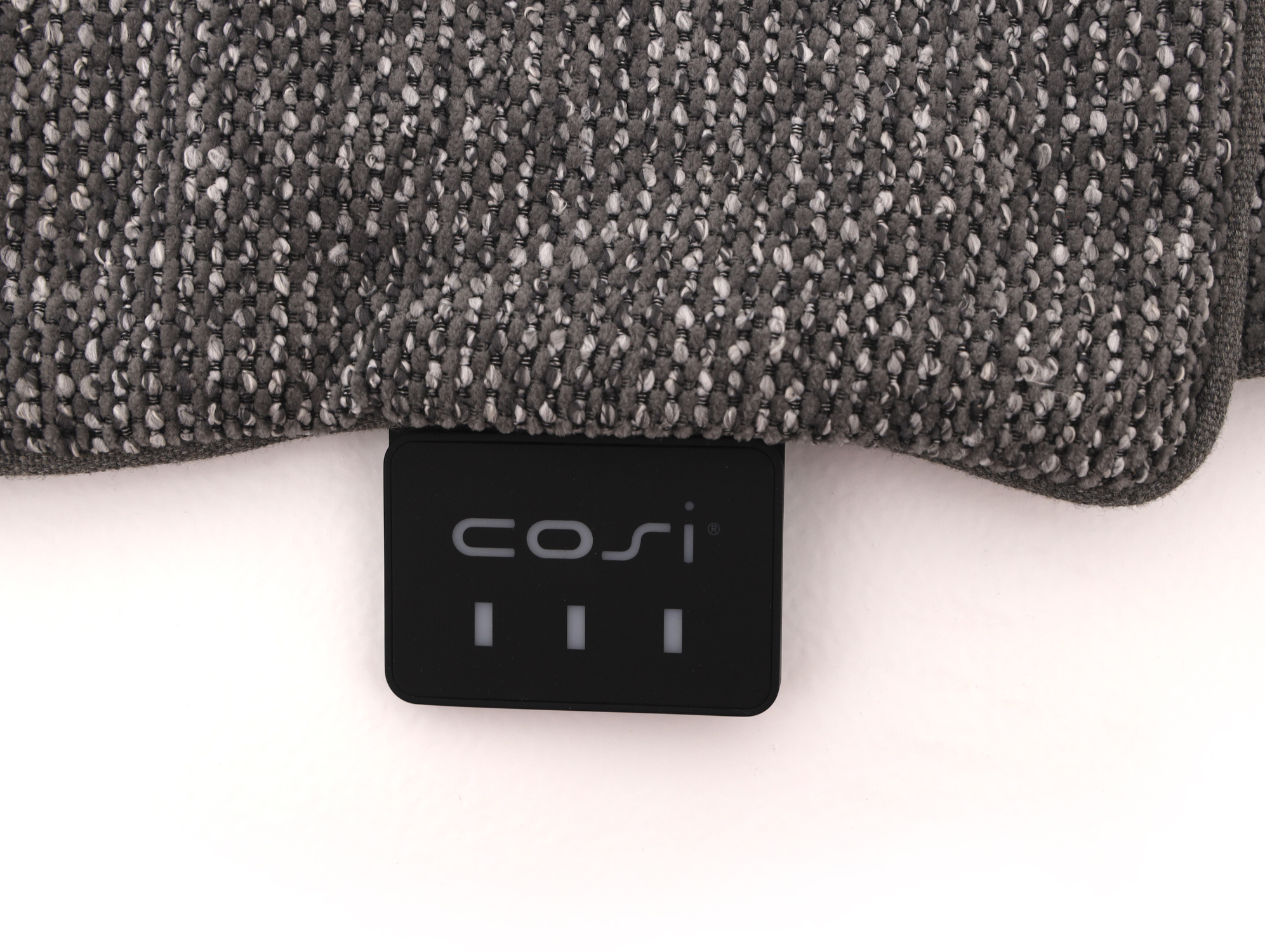 - Warmte instellen – Houd de Q-knop een paar seconden ingedrukt om het kussen aan te zetten. Druk nogmaals om de warmtestand te kiezen.
