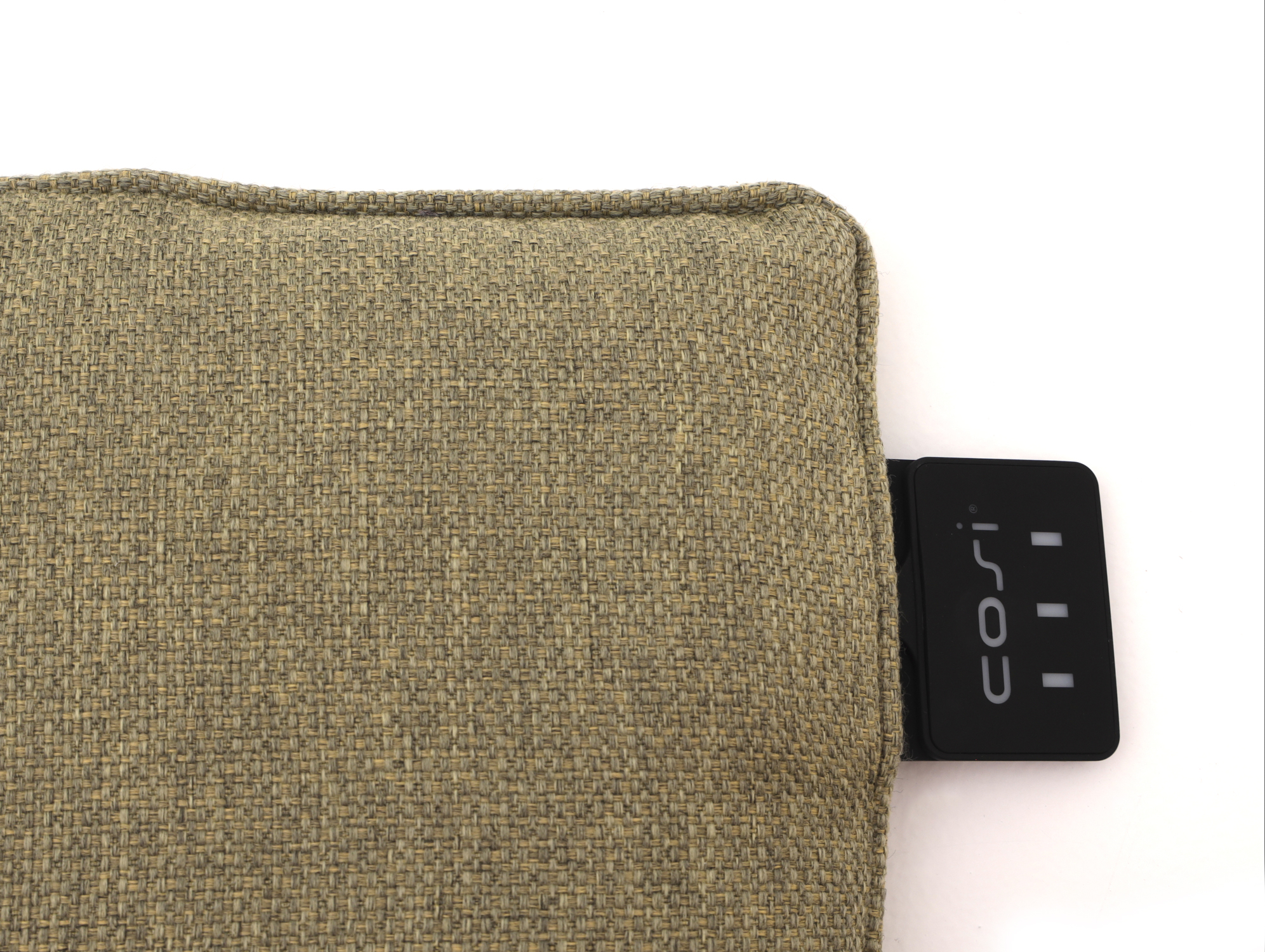 - Warmte instellen – Houd de Q-knop een paar seconden ingedrukt om het kussen aan te zetten. Druk nogmaals om de warmtestand te kiezen.