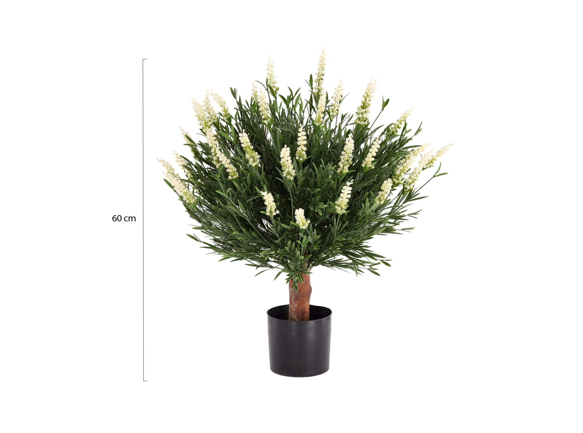 Deze kunstlavendel is 60 cm hoog en ongeveer 60 cm breed, waardoor hij mooi uitkomt als soloplant op een bijzettafel, dressoir of in een groepje bij de schuifpui. De binnenpot heeft maat ø13x12 cm, waardoor hij perfect past in Luca Lifestyle bloempotten met potmaat M: je zet de plant met binnenpot zo in de sierpot. Het materiaal is een combinatie van kunststof en hout, stevig genoeg voor dagelijks gebruik in huis of tuinkamer. Deze kunstplant past vooral bij je als je een nette, volle “groene” blikvanger wilt, zonder dat je eraan hoeft te denken of hij wel genoeg water heeft.