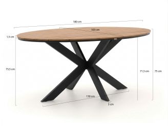 • Ovale tafel van 180 cm: De afgeronde vorm oogt vriendelijk en je loopt er makkelijker omheen dan bij een rechthoekige tafel.