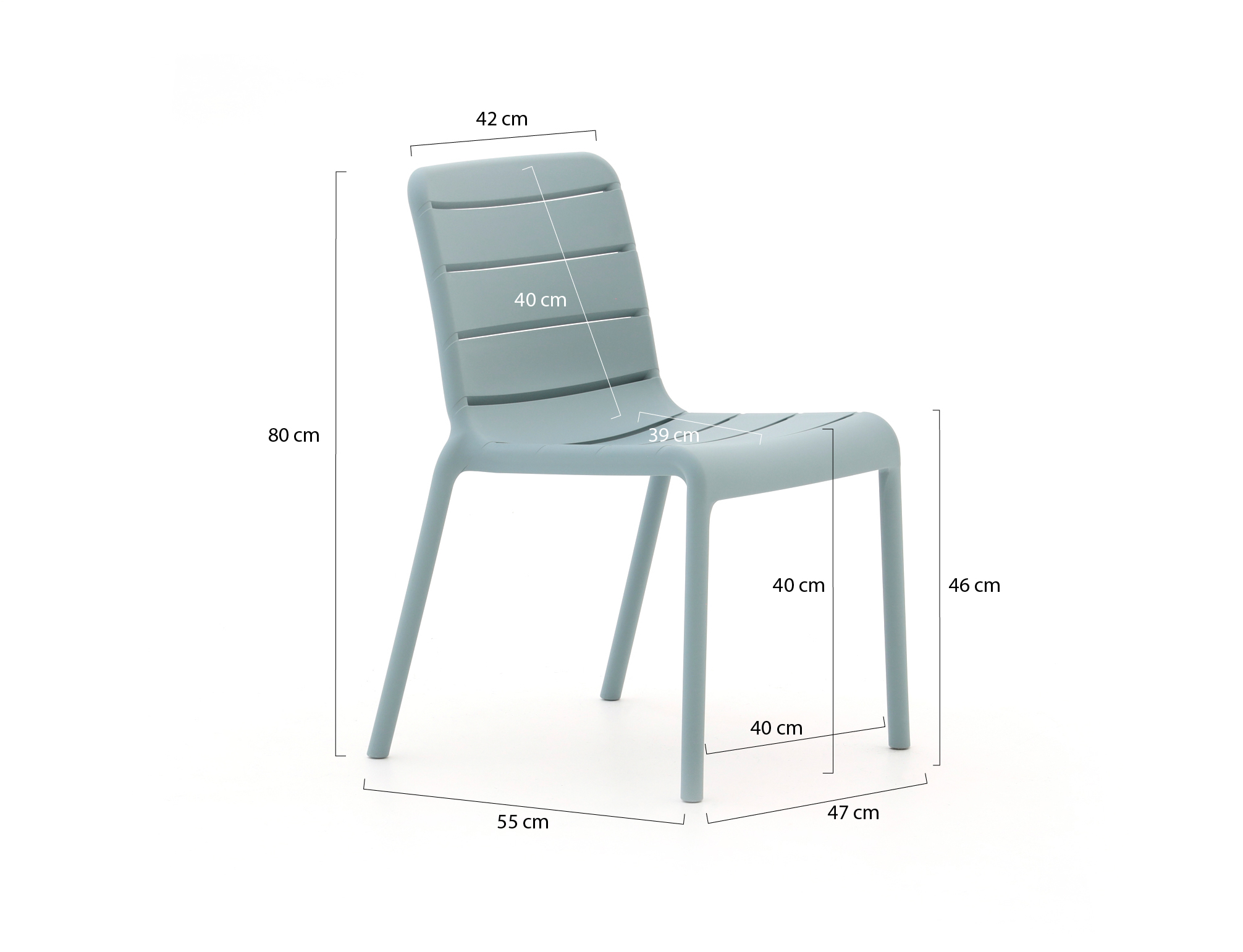 • Dankzij het stapelbare ontwerp berg je de stoelen eenvoudig op