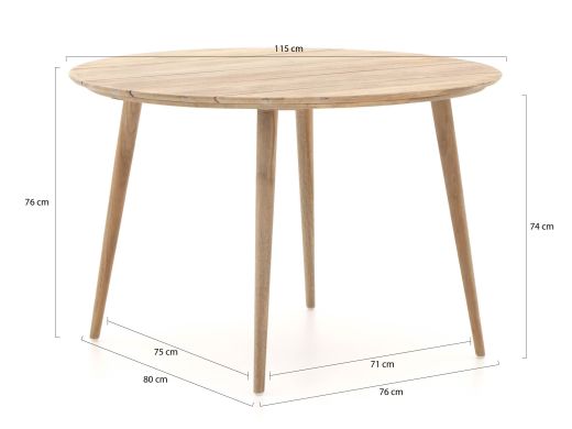 Forza Narni/ROUGH-K ø 115cm dining tuinset 5-delig stapelbaar aanpassen