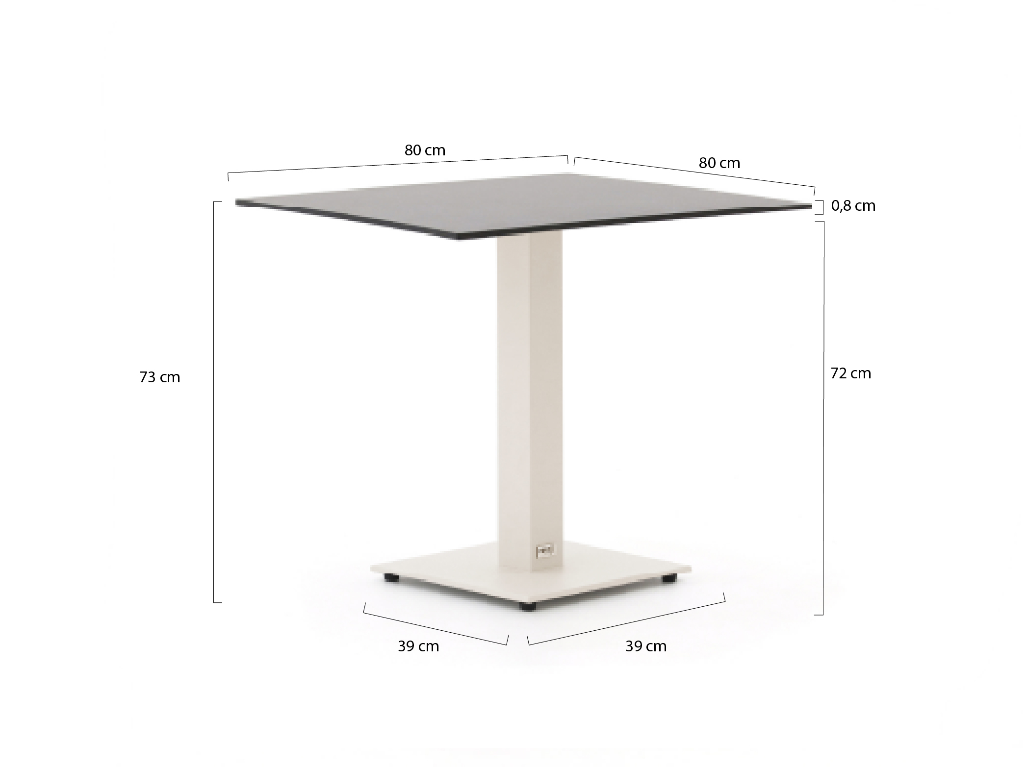 Bellagio tafelblad 70x70cm t.b.v. Canzo/Lisio/Orta pootstel (enkel)   + 0,-